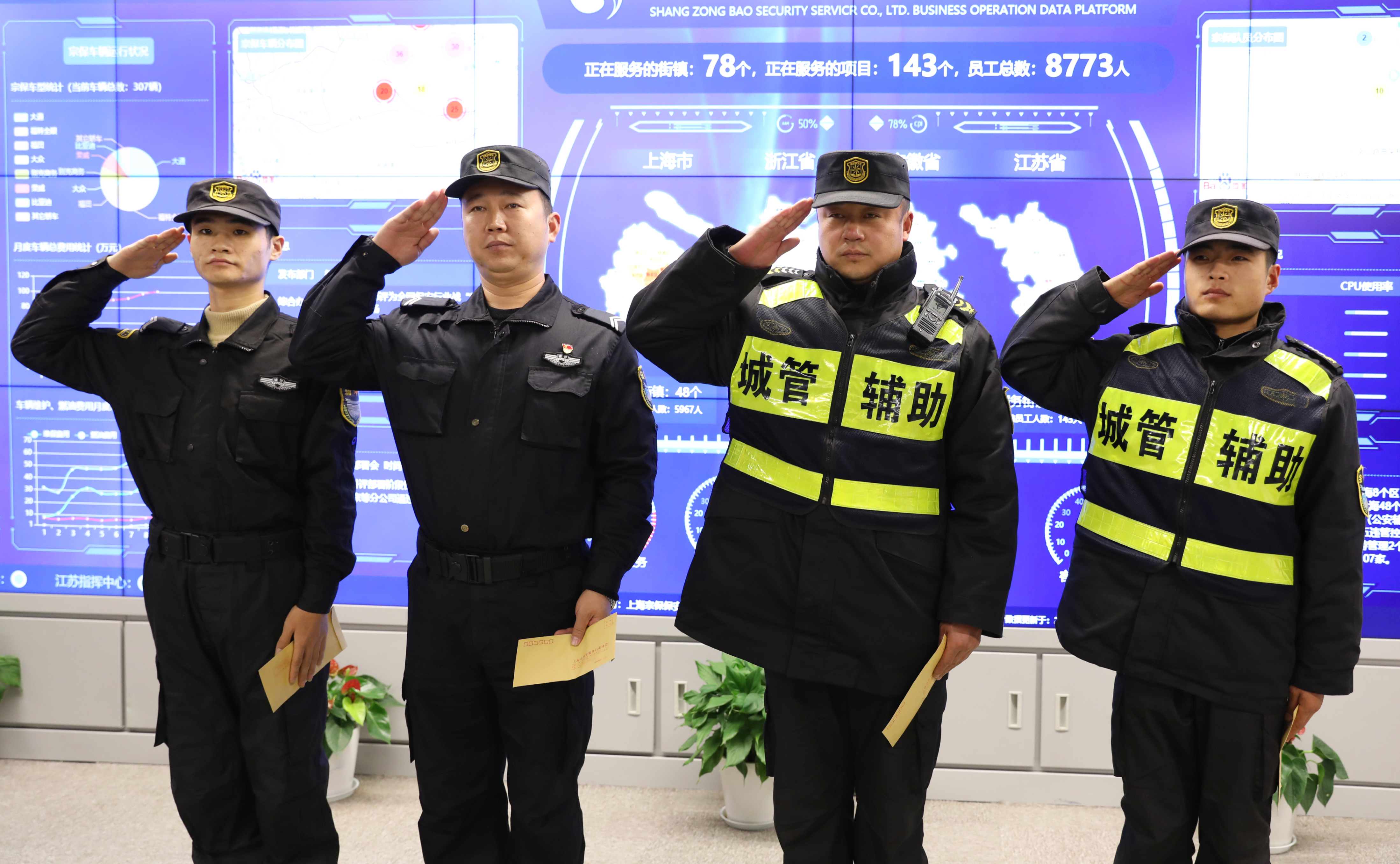 ? 12月18日,市公安局治安總隊(duì)保安管理處處長(zhǎng)丁寧、市保安服務(wù)行業(yè)協(xié)會(huì)秘書(shū)長(zhǎng)楊躍毅到宗保公司慰問(wèn)跳水救人的隊(duì)員胡錦濤、周書(shū)力、譚波、李斌。