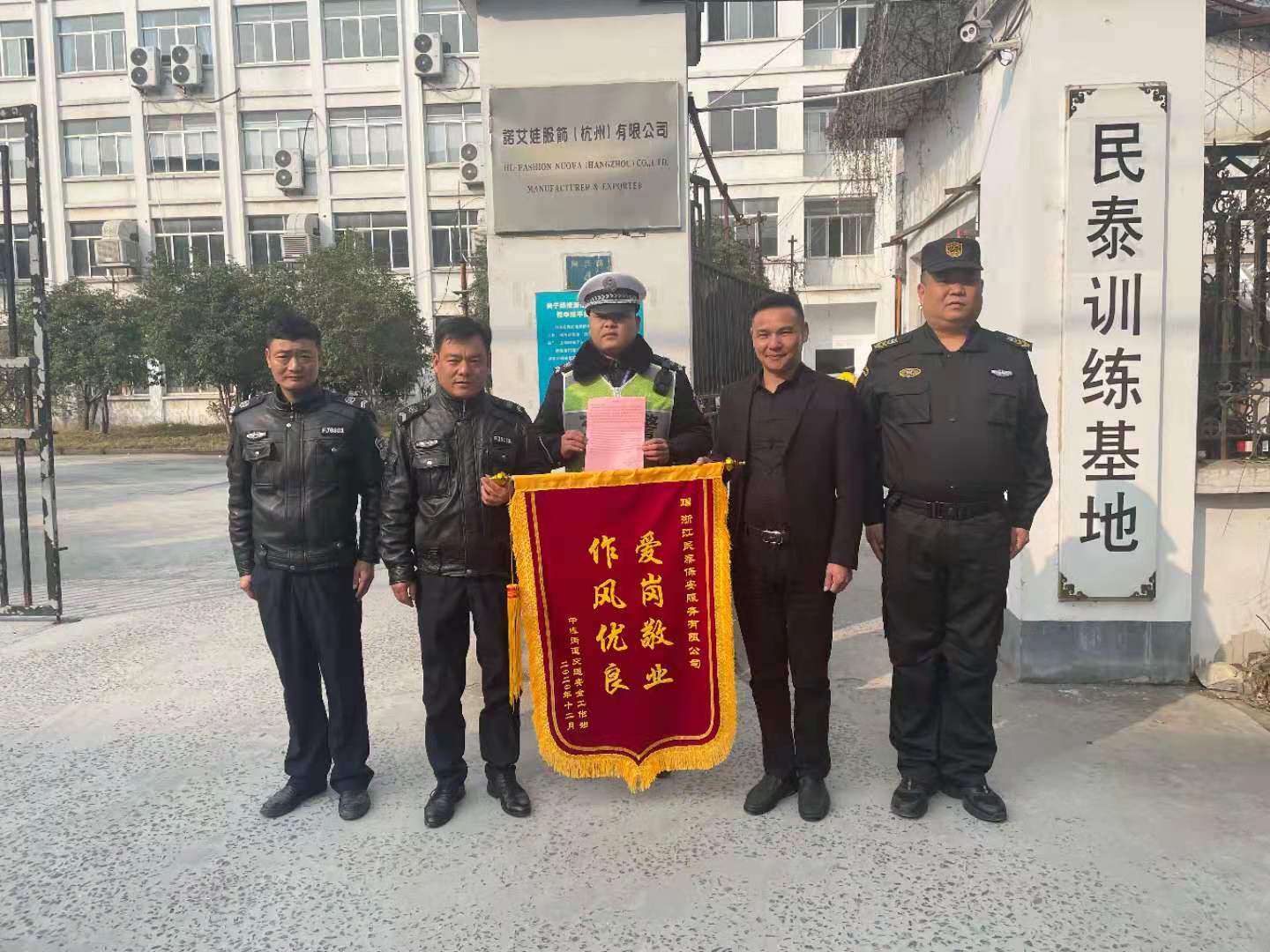 12月28日,中泰街道交通安全管理工作站站長王平將一面繡有“愛崗敬業(yè) 作風優(yōu)良”的錦旗和一封表揚信送到民泰公司基地,對民泰隊員盡職盡責的工作表現(xiàn)提出表揚。