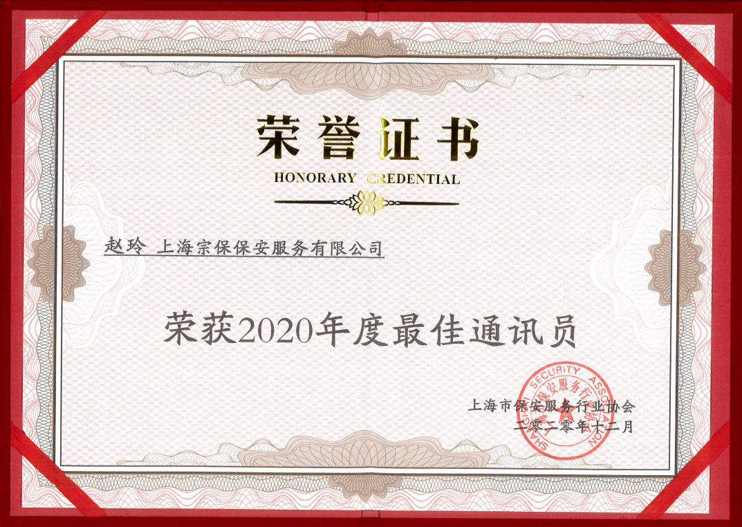 會(huì)議總結(jié)了2020年度通訊員工作情況,部署了下階段工作任務(wù),表彰了年度優(yōu)秀通訊員、2020年上海市保安服務(wù)行業(yè)攝影大賽得獎(jiǎng)?wù)?。宗保公司榮獲上海市保安服務(wù)行業(yè)協(xié)會(huì)第一屆攝影比賽三等獎(jiǎng),公司副經(jīng)理趙玲被評(píng)為2020年度最佳通訊員。