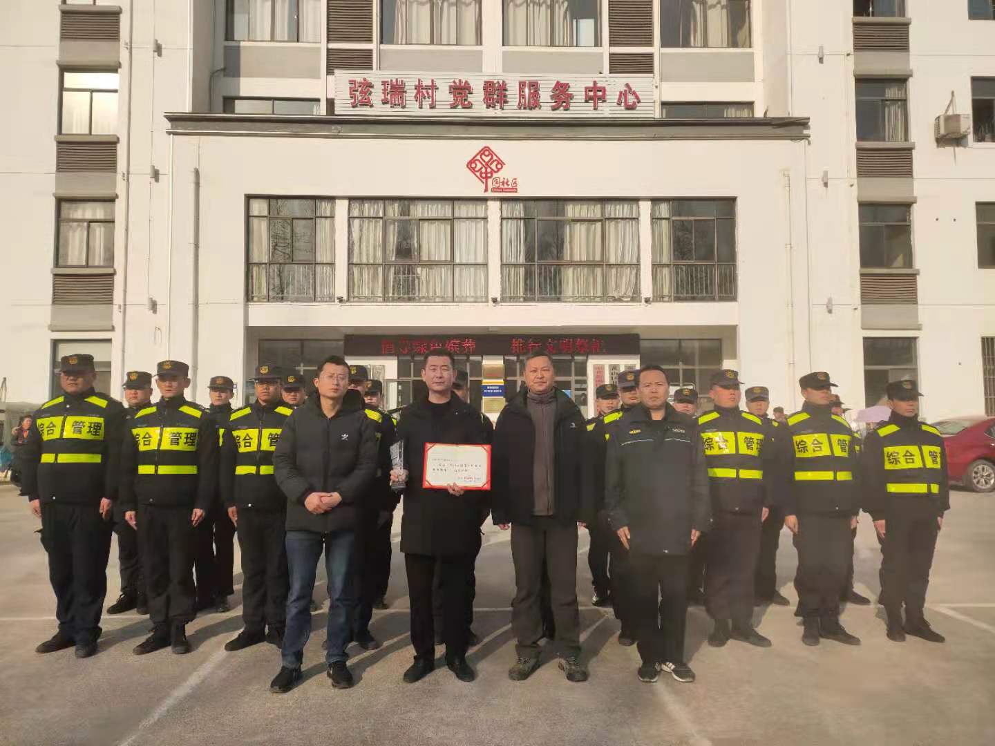 1月11日,黃山區(qū)城市管理行政執(zhí)法局局長汪雷春來到項目基地,為獲評為“黃山區(qū)創(chuàng)建文明城市優(yōu)秀集體”的上海宗保保安服務(wù)有限公司送來獎杯和榮譽證書。