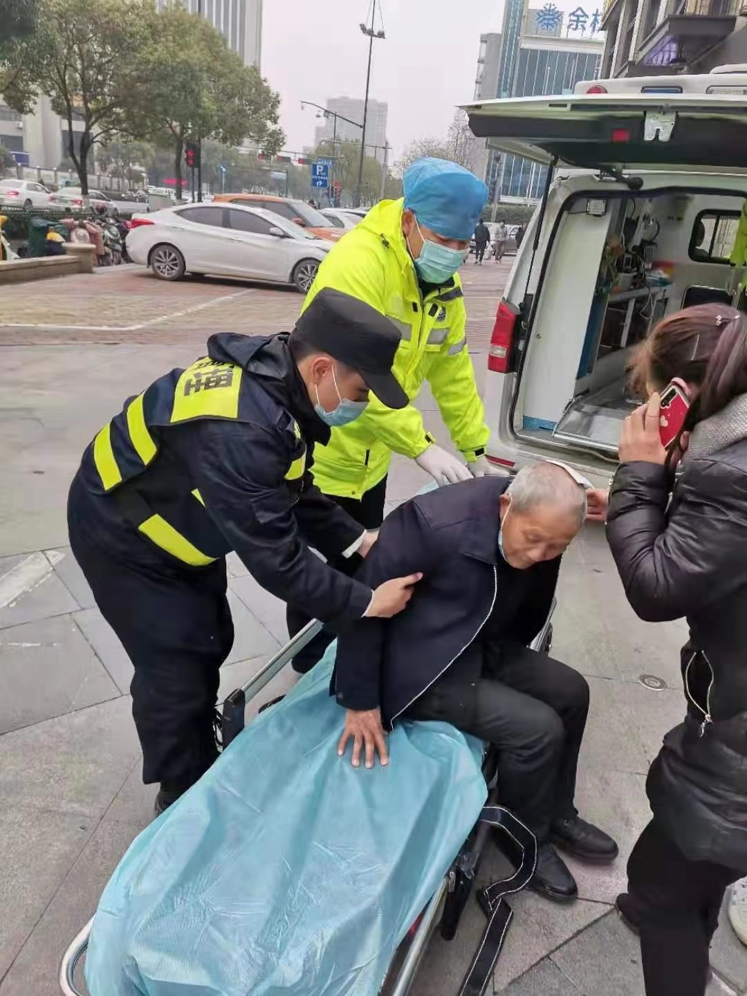 很快,120救護(hù)車趕到現(xiàn)場,張艮振將大伯?dāng)v扶上救護(hù)車后,兩人回到崗位繼續(xù)執(zhí)勤。