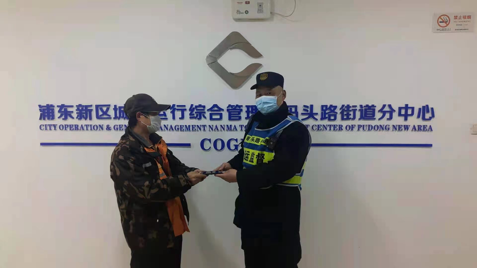 隊員巡邏撿手機(jī) 歸還失主暖人心—南碼頭路街道城運中心項目隊員撿到手機(jī)