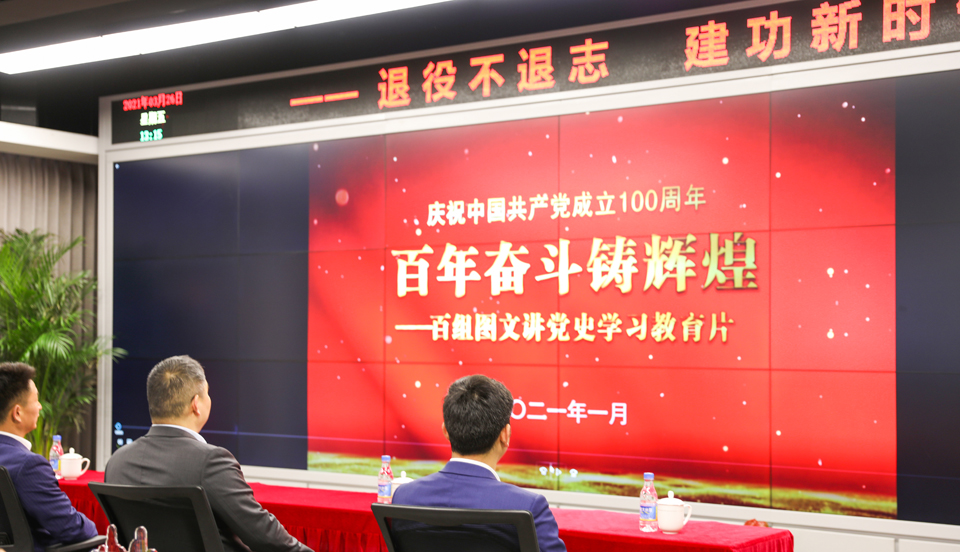 隨后,全體黨員觀看了由原總政治部副主任兼中央軍委紀(jì)律檢查委員會(huì)書記童世平等離退休老干部編制、宗保公司贊助、向黨百年誕辰獻(xiàn)禮的《百年奮斗鑄輝煌 ——百組圖文講黨史》學(xué)習(xí)教育片。