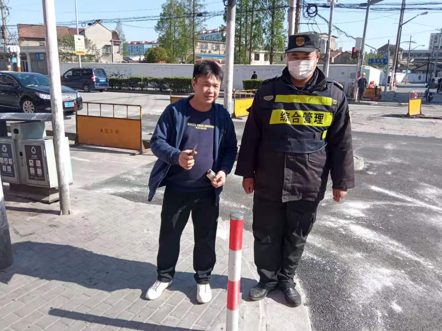 4月4日,宗保公司駐高行市容項目隊員周潤增撿到手機歸還失主,受到好評。