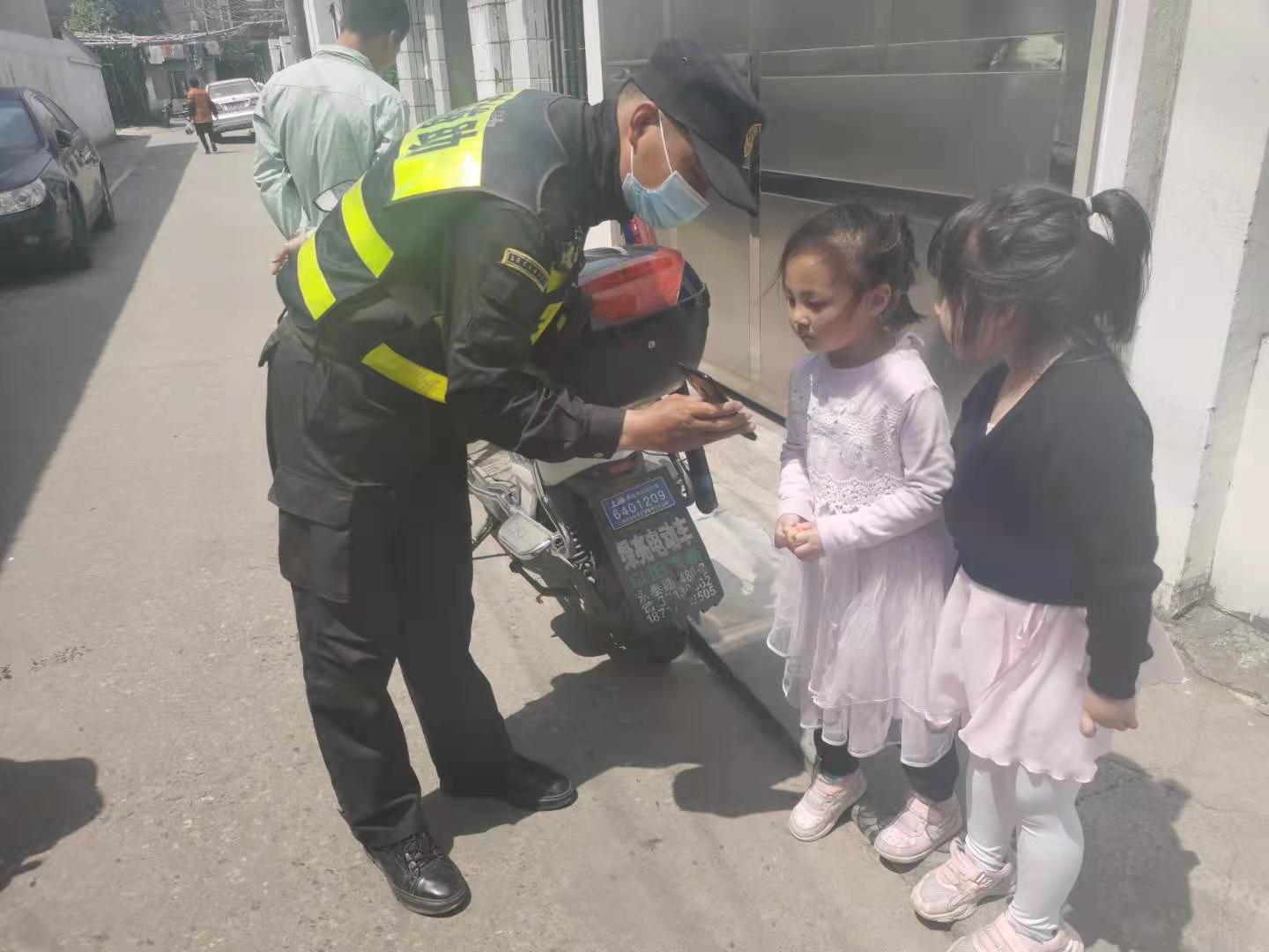 4月3日,宗保公司駐周浦輔警項(xiàng)目隊(duì)員耿茂張幫助走散兒童找到家人。