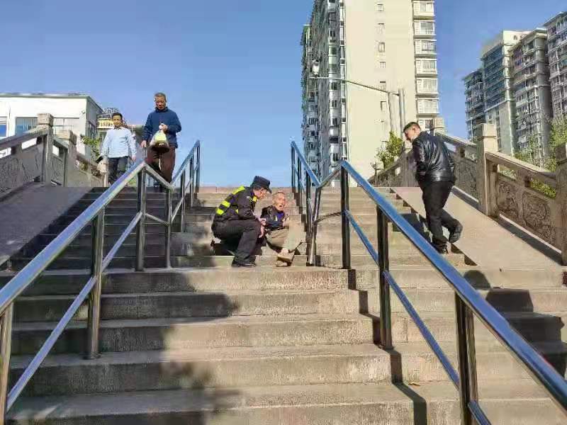 當(dāng)日15:30,李彥兵巡邏至東南萊市場(chǎng)湯家木橋時(shí),看到一位約八旬的老人躺坐在臺(tái)階上,就立即上前詢問,老人用手比劃著表示身體并無大礙。