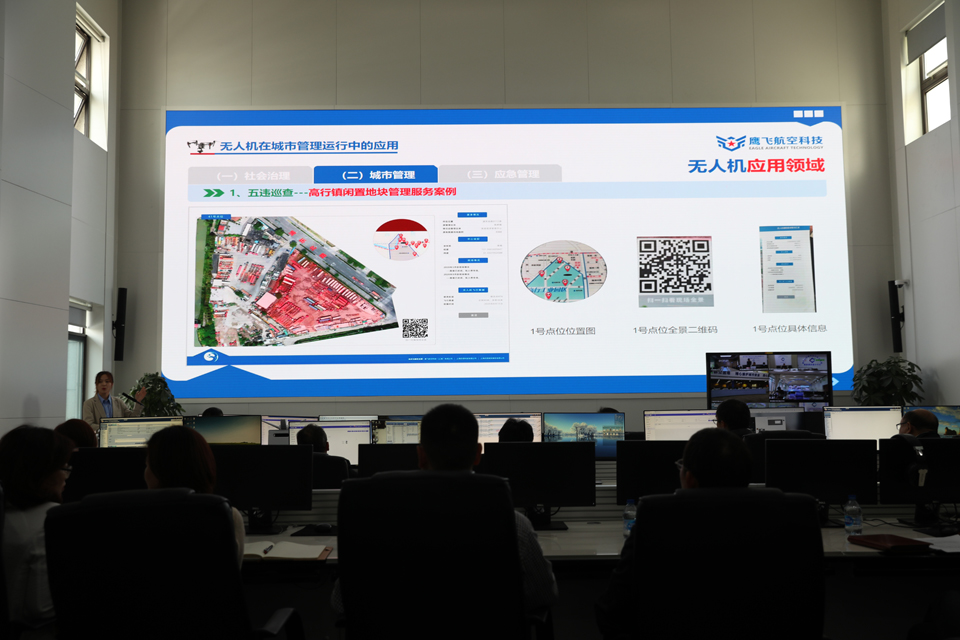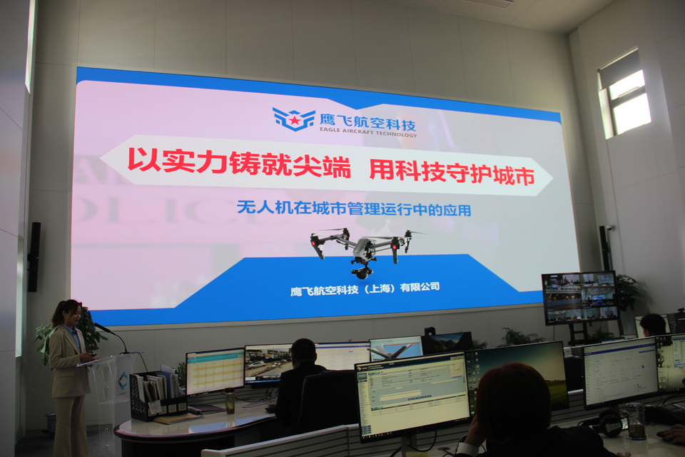 4月28日,浦東新區(qū)無人機(jī)在城市運(yùn)行管理領(lǐng)域的應(yīng)用座談會(huì)在周浦鎮(zhèn)城市運(yùn)行管理中心召開,鷹飛航空公司參加會(huì)議并對(duì)無人機(jī)在城市運(yùn)行管理領(lǐng)域的應(yīng)用進(jìn)行演示介紹。