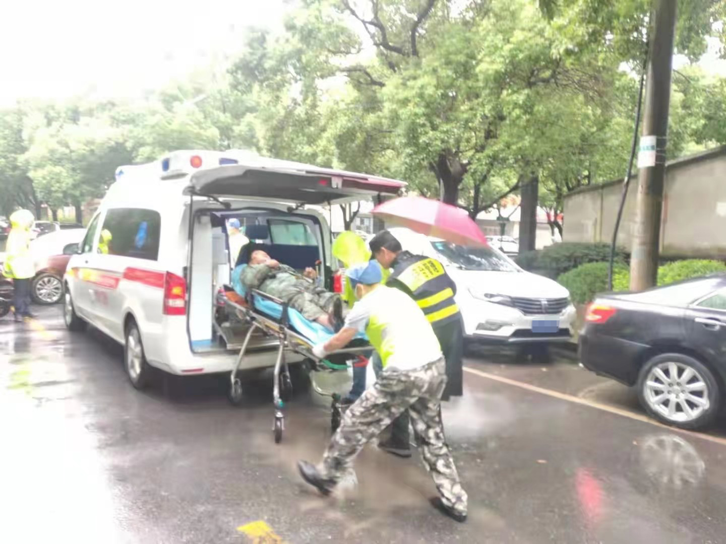 很快,120救護車趕到,隊員們幫助醫(yī)護人員將老人抬上救護車,送往醫(yī)院救治。