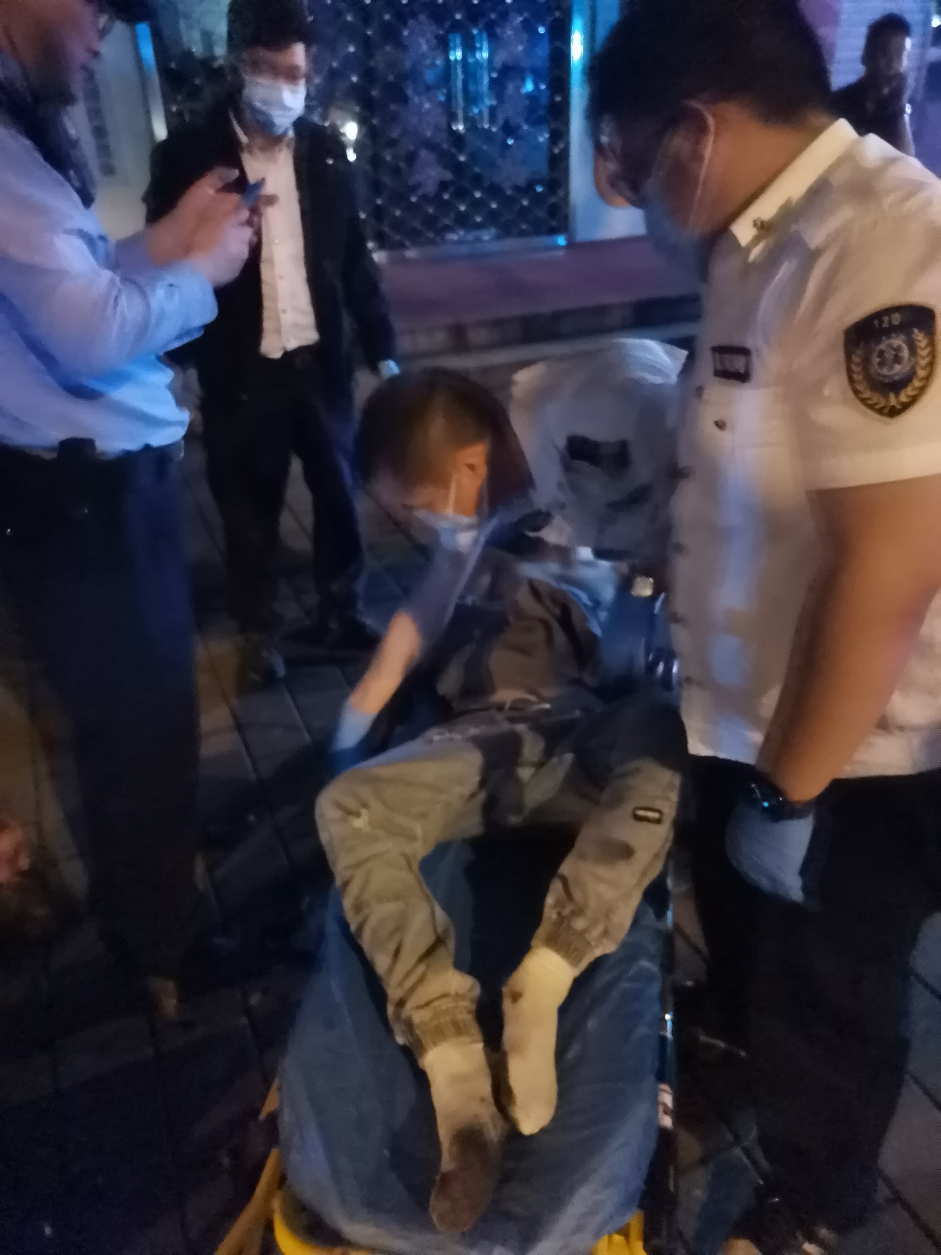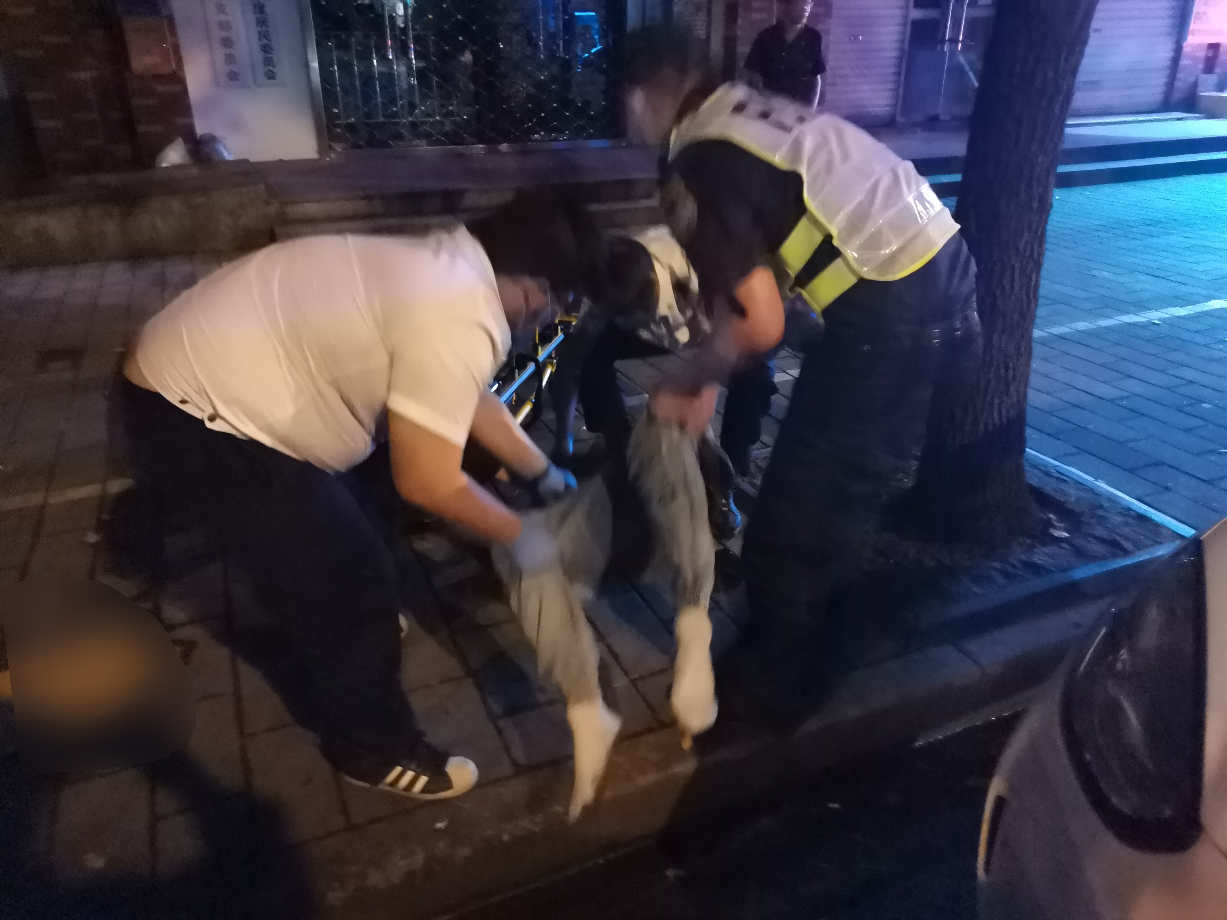 當日22:50,楊俊國、馬世界、朱雙喜駕車在金藏路靠近楊高中路巡邏時,看到一名男子赤裸上身躺在馬路邊,衣服丟在一旁。