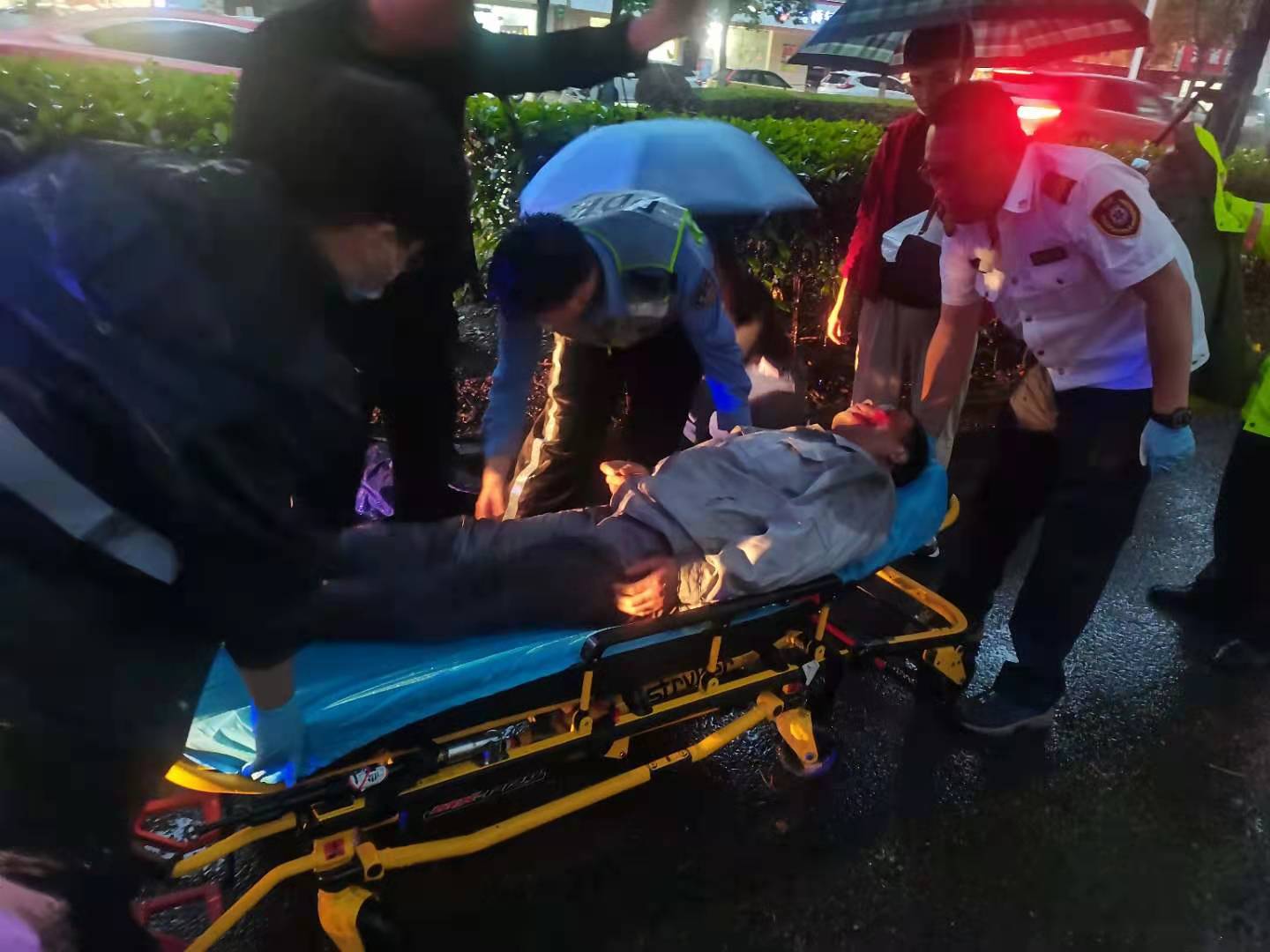 隨后,楊俊國幫助120醫(yī)護人員將男子抬上救護車,送往醫(yī)院。