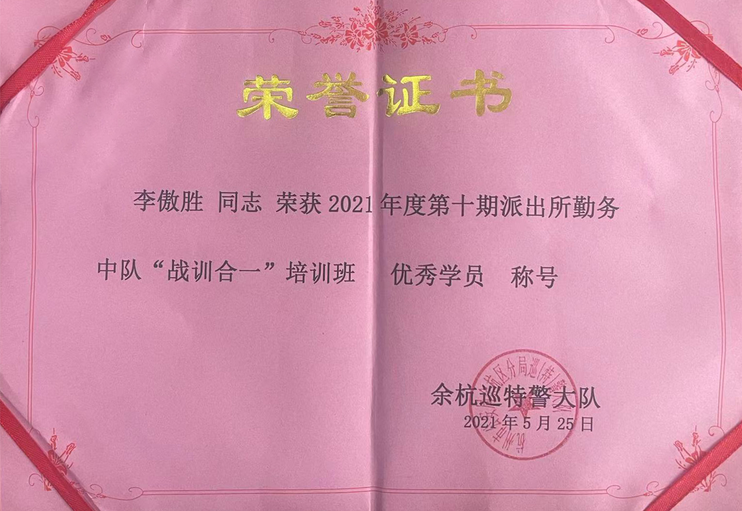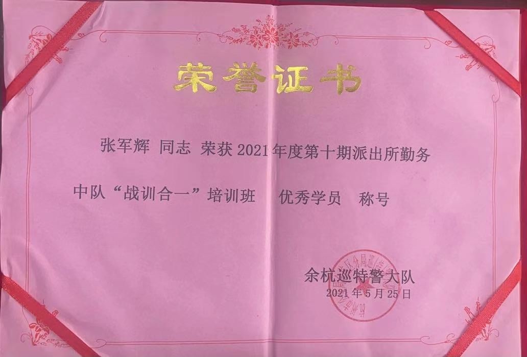 5月25日,浙江民泰駐星橋派出所項(xiàng)目2名隊(duì)員在“戰(zhàn)訓(xùn)合一”培訓(xùn)中喜獲佳績(jī)。