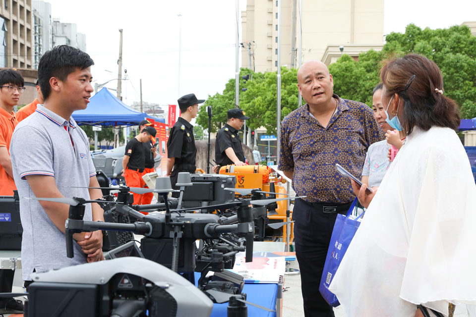 13:00,鷹飛航空公司攜多款無(wú)人機(jī)、應(yīng)急救援車、應(yīng)急救生艇、應(yīng)急裝備和多種破拆工具亮相活動(dòng)現(xiàn)場(chǎng)。在宣傳展位前,公司工作人員向咨詢?nèi)藛T詳細(xì)介紹了無(wú)人機(jī)、應(yīng)急救援車等科技裝備的性能用途,重點(diǎn)列舉了應(yīng)急科技裝備在消防滅火、災(zāi)難救助、應(yīng)急救援等領(lǐng)域的應(yīng)用實(shí)例,現(xiàn)場(chǎng)演示了無(wú)人機(jī)起飛、降落、懸停、巡航、拍照、攝影以及回傳處理等功能,其機(jī)動(dòng)靈活、操作簡(jiǎn)單、快速高效的性能得到了現(xiàn)場(chǎng)人員的好評(píng)。