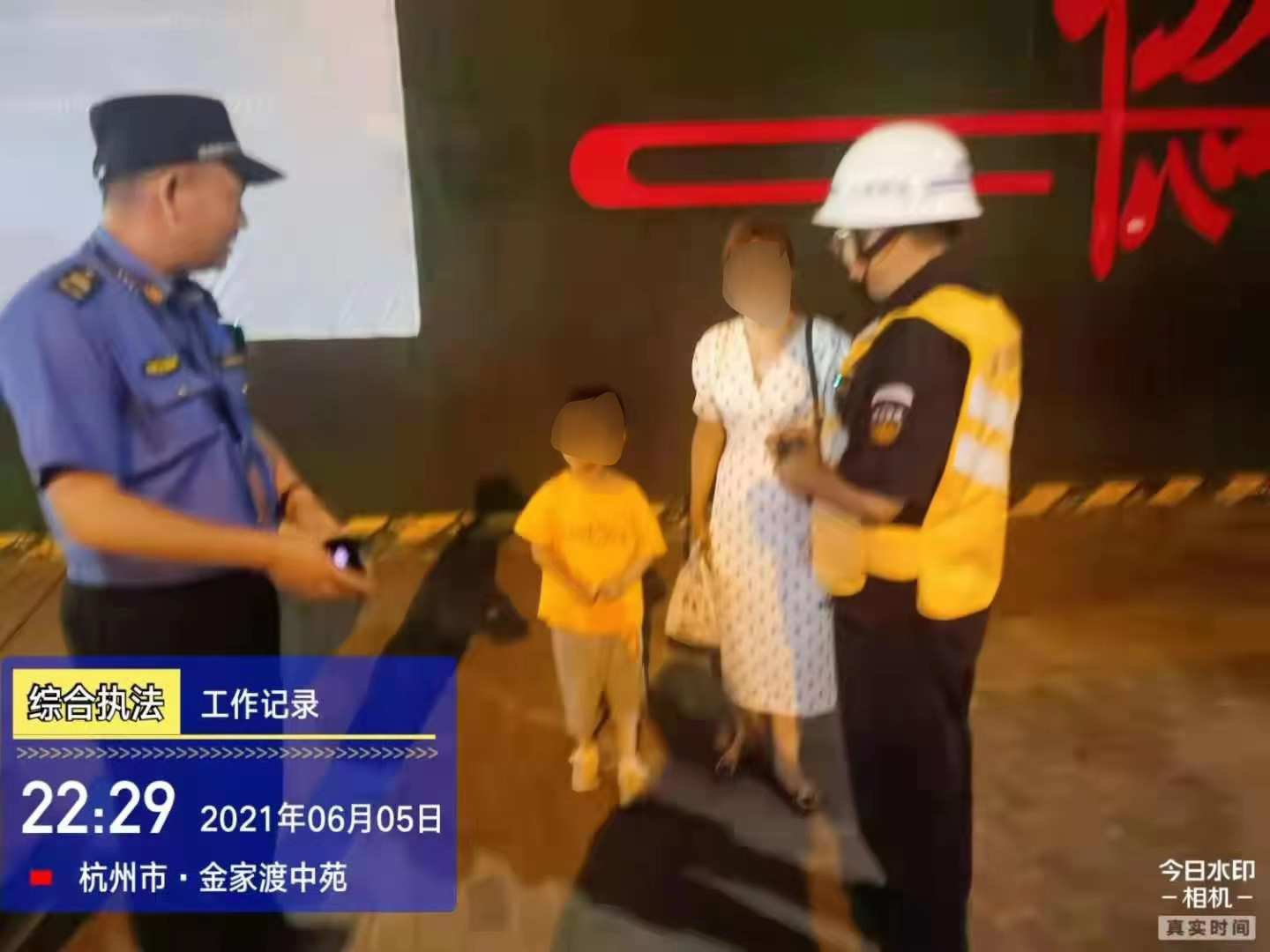 6月5日,浙江民泰駐良渚物流項目隊員孫明峰、李軍軍幫助走散男童找到家人。