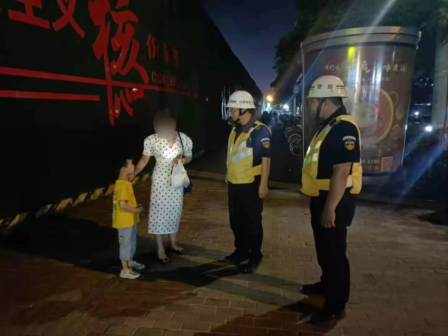 兩名隊員隨即上前詢問,原來小男孩找不到媽媽了。依據(jù)其描述,隊員確認(rèn)小男孩與媽媽走散的時間不長,便趕緊聯(lián)系其他隊員在四周幫忙尋找。
