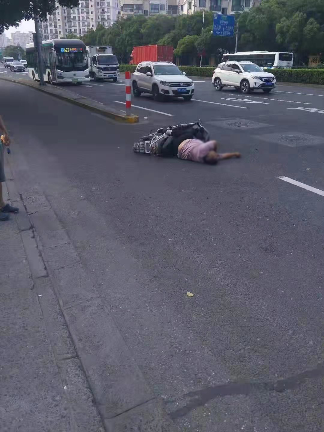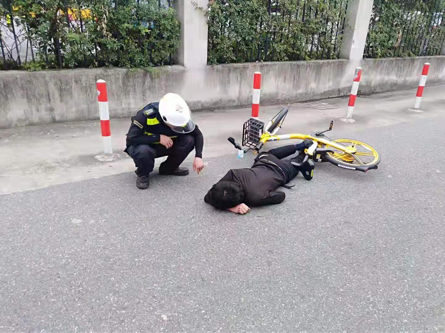 男子騎車突倒地 隊員救助暖人心—三林市容項目隊員救助騎車摔倒男子