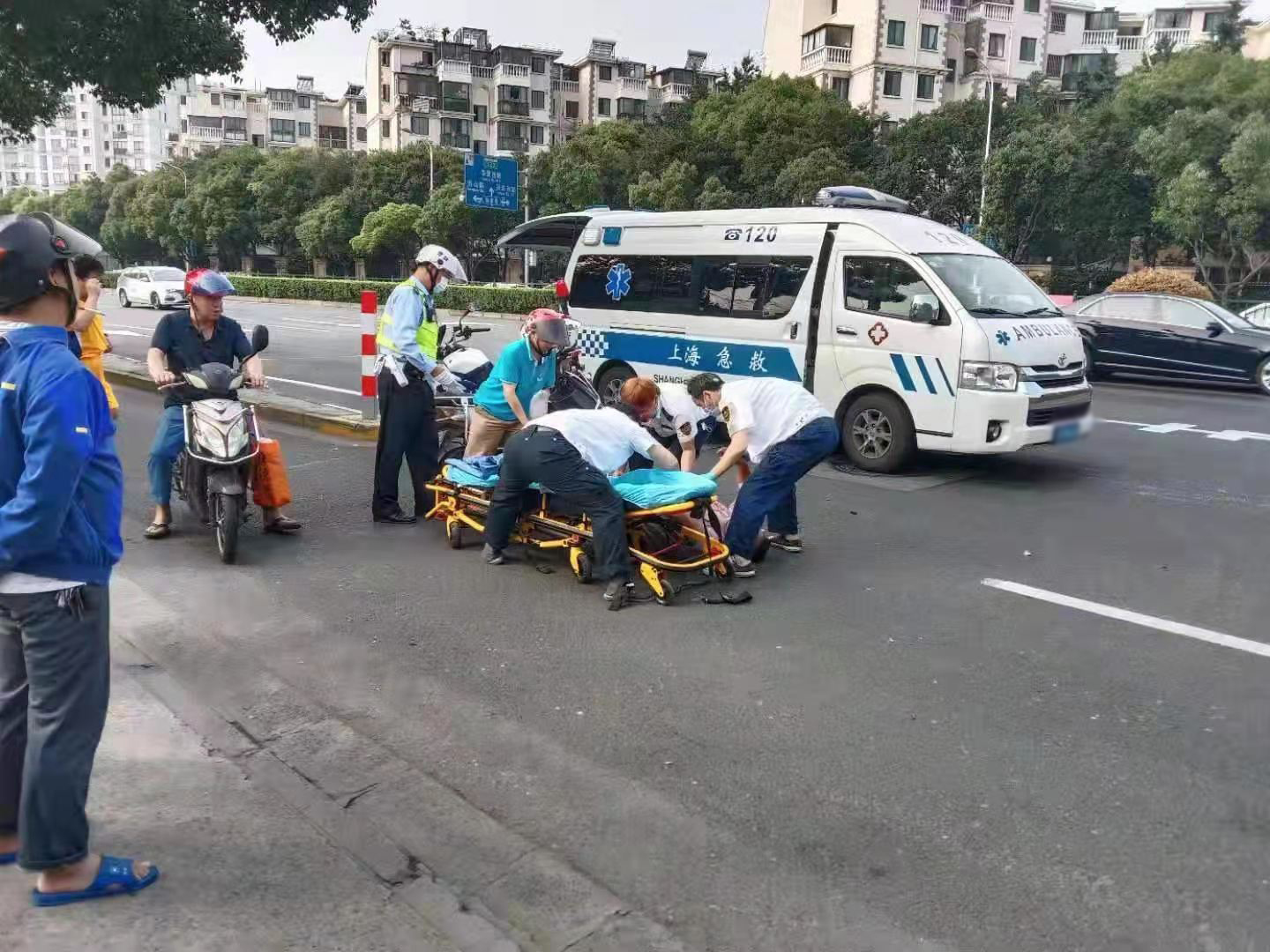 很快,救護車、交警先后趕到現(xiàn)場,隊員們協(xié)助醫(yī)護人員將男子抬上救護車,由醫(yī)護人員送男子前往醫(yī)院緊急救治。