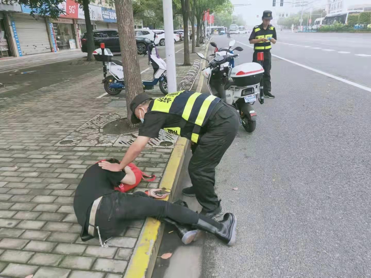 很快,班組長趕到現(xiàn)場,詢問附近商戶和圍觀群眾,都說不認(rèn)識該男子。隨后,民警也趕到現(xiàn)場,這時男子已逐漸蘇醒。張展展將男子扶起,向民警說明現(xiàn)場情況后,兩名隊員就重回崗位繼續(xù)巡邏。