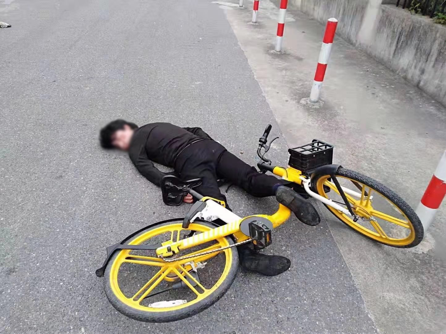 當(dāng)日6:15,林志明和劉大旺巡邏至高青路聯(lián)豐路路口時,看到一騎單車男子摔倒在地,便趕緊跑上前,男子滿臉是血,躺倒在地上沒有反應(yīng)。