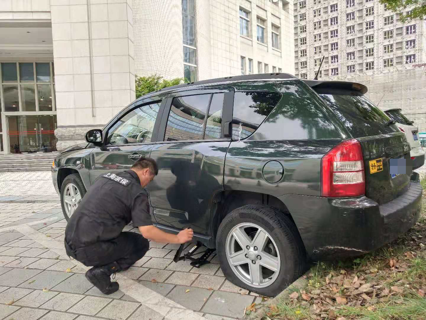 當天7:00,項目組長許志剛在校內巡邏時,發(fā)現(xiàn)北門停車場有位男子一直在徘徊,便立即上前詢問。原來這位男子是來黨校參加“哲社班”培訓的學員,車子后輪被釘子扎破,完全沒氣無法行走,一時找不到維修師傅,心理十分著急。