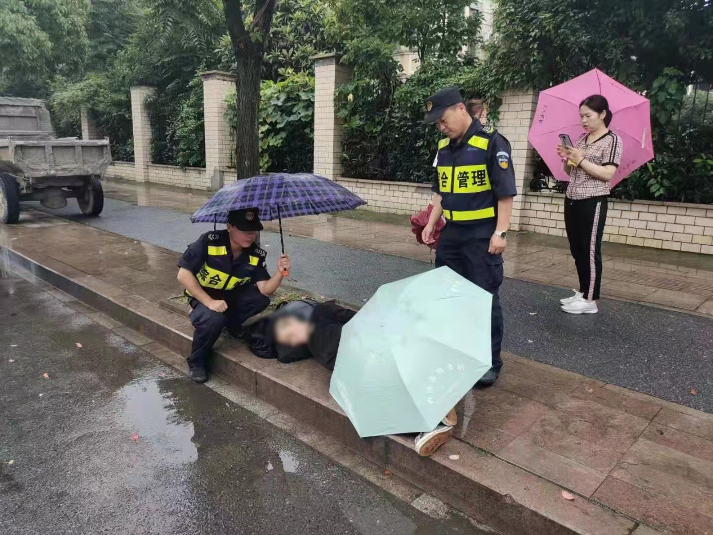 7月3日,浙江民泰駐閑林城管項目隊員幫助醉酒男子。