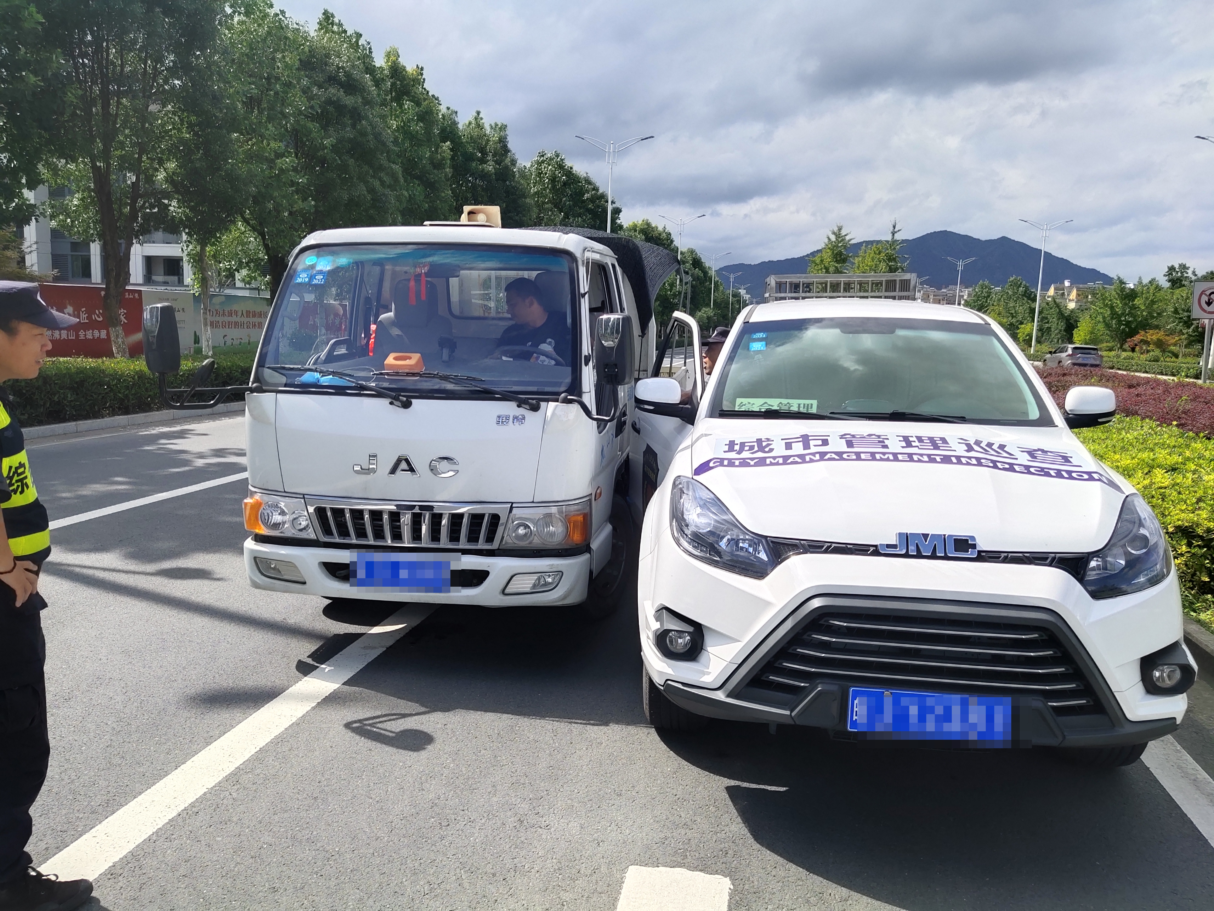 當天15:00,程晴國、馮子貴協(xié)助城管執(zhí)法局開展勸離賣瓜流動攤販行動時,賣瓜攤主駕車惡意逼停執(zhí)勤車輛,導致兩車倒車鏡相撞,所幸人員車輛沒有受到大的傷害和損失。