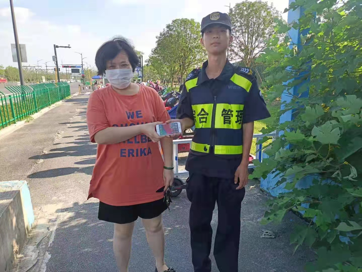 15:50左右,一位中年女子匆匆趕到約定地點(diǎn),經(jīng)核實(shí)確認(rèn)其是失主后,郭安毅將手機(jī)歸還給她。中年女子拿回丟失的手機(jī),非常開心,連連向隊(duì)員道謝。