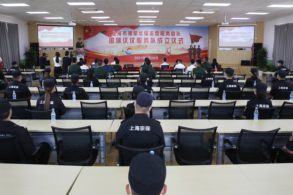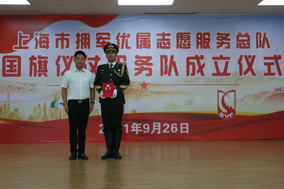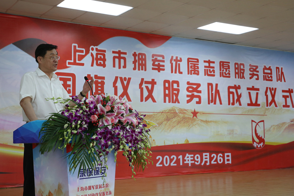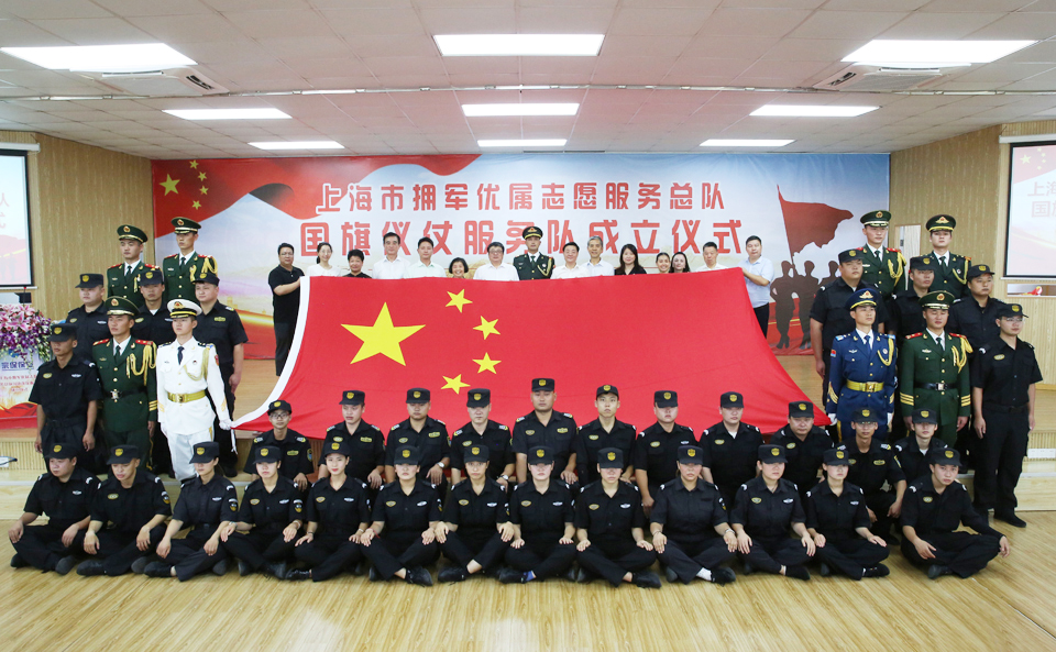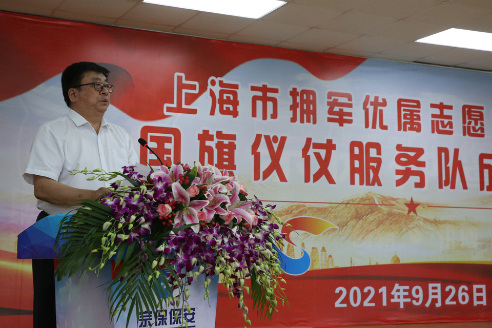9月26日,上海市擁軍優(yōu)屬志愿服務(wù)總隊(duì)在宗保公司大禮堂舉行國(guó)旗儀仗服務(wù)隊(duì)成立授旗儀式。