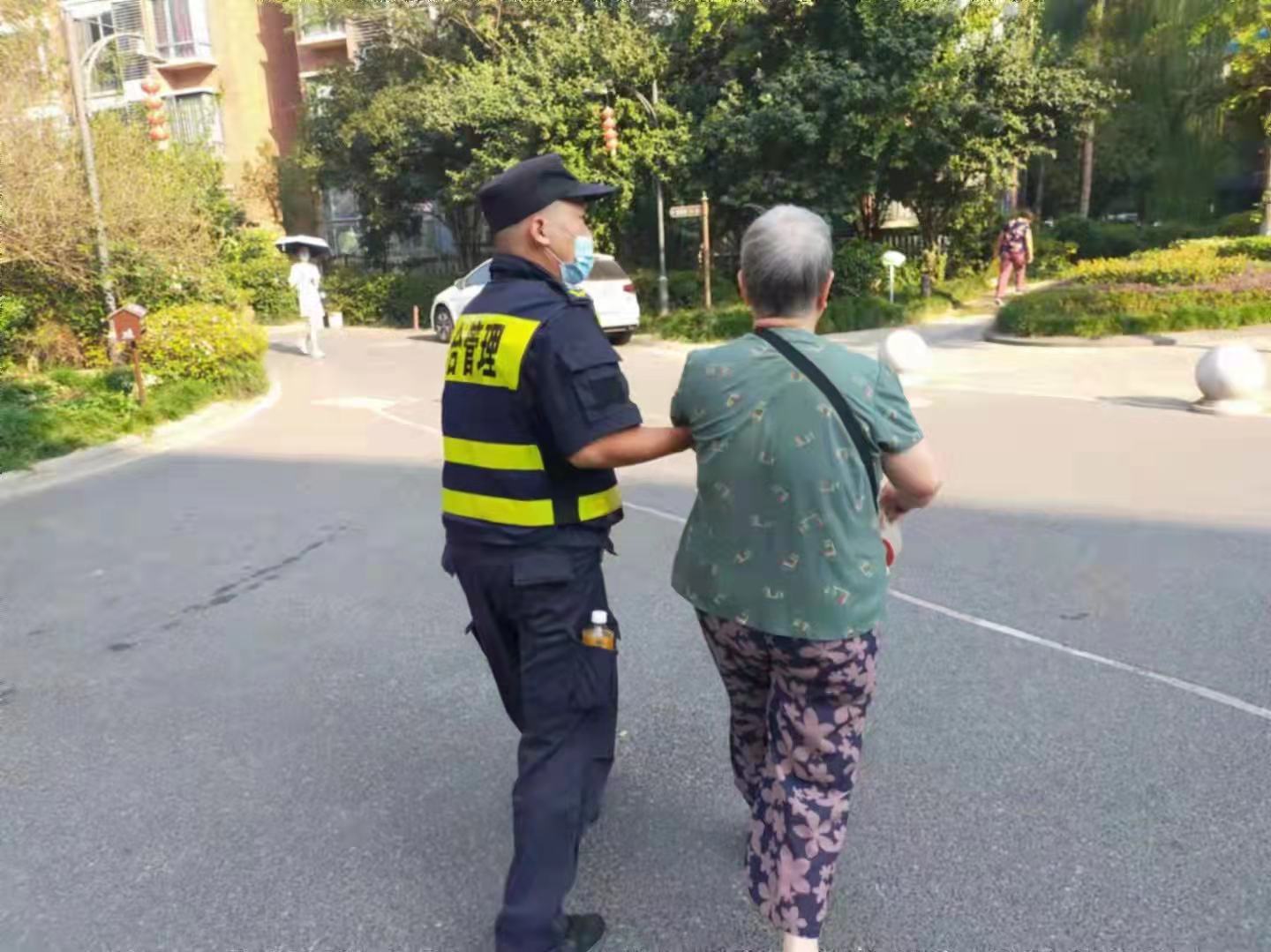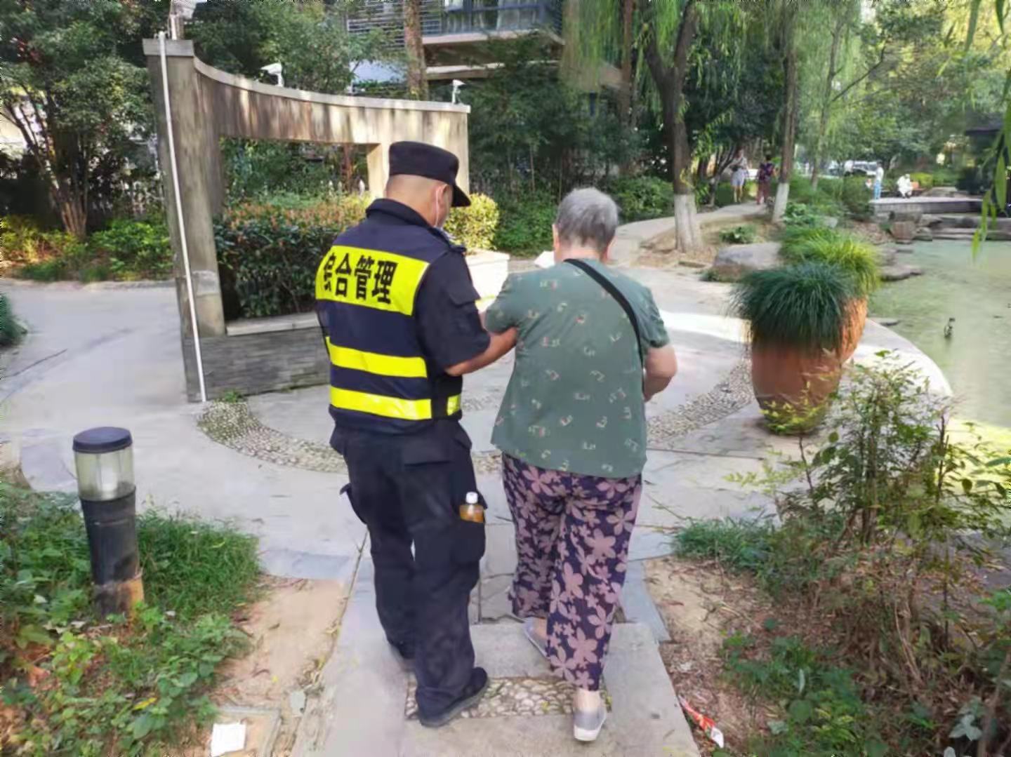 9月30日,浙江民泰駐閑林城管輔助項目隊員張騰、陳西穆暖心幫助受傷老人。