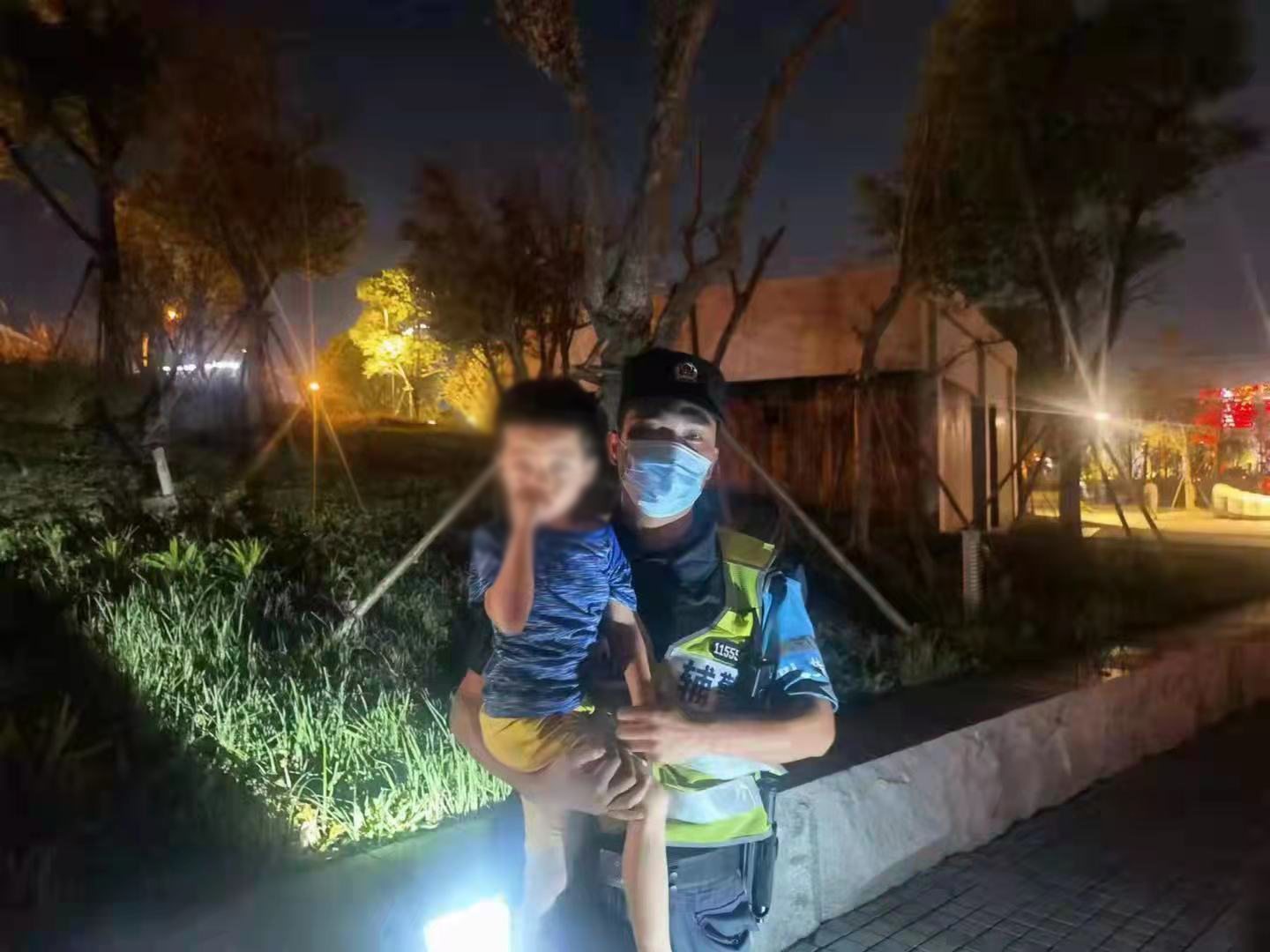 當(dāng)日18:30,滴水湖環(huán)湖景觀帶兒童樂園附近,一名游客與5歲的孩子走散,心急如焚,焦急地向宗保隊員張楠楠求助。