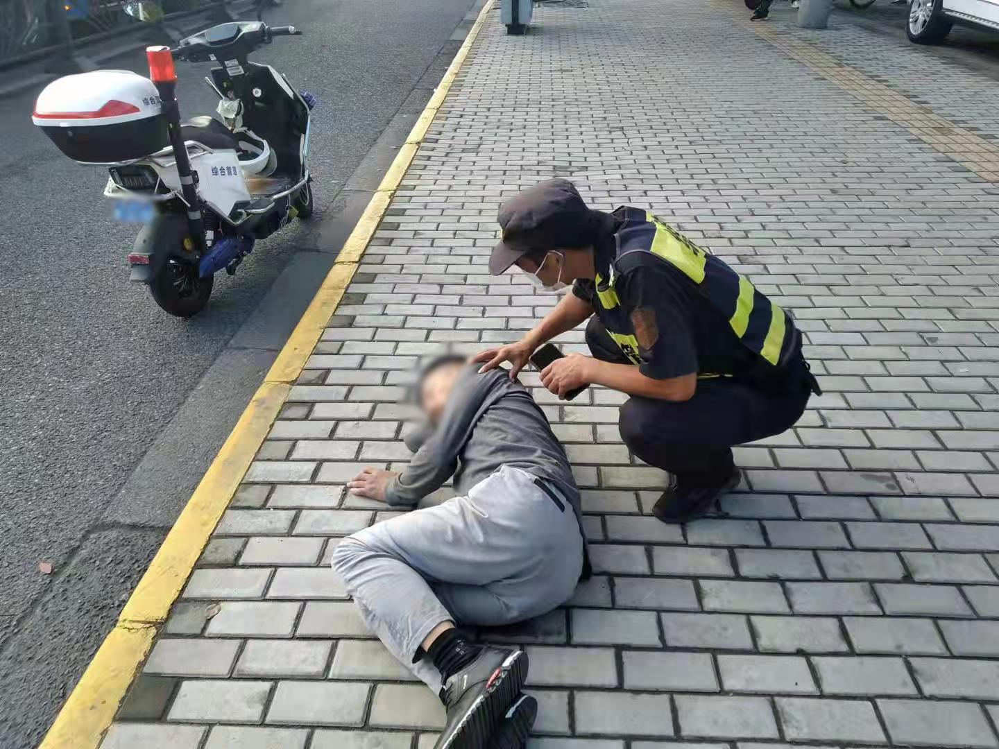 10月9日,宗保公司駐三林市容項目隊員張展展幫助一名醉酒男子,得到圍觀群眾好評。
