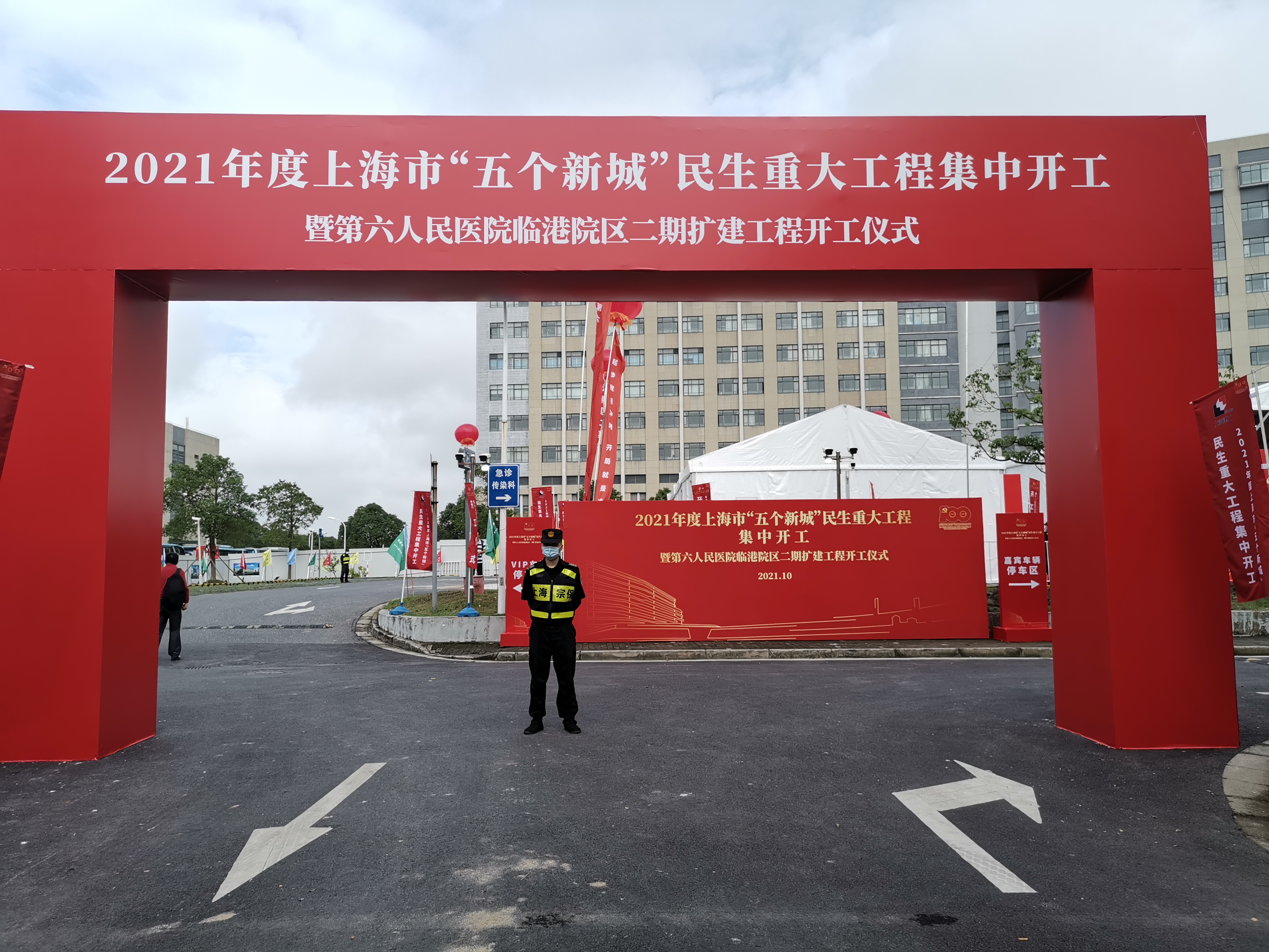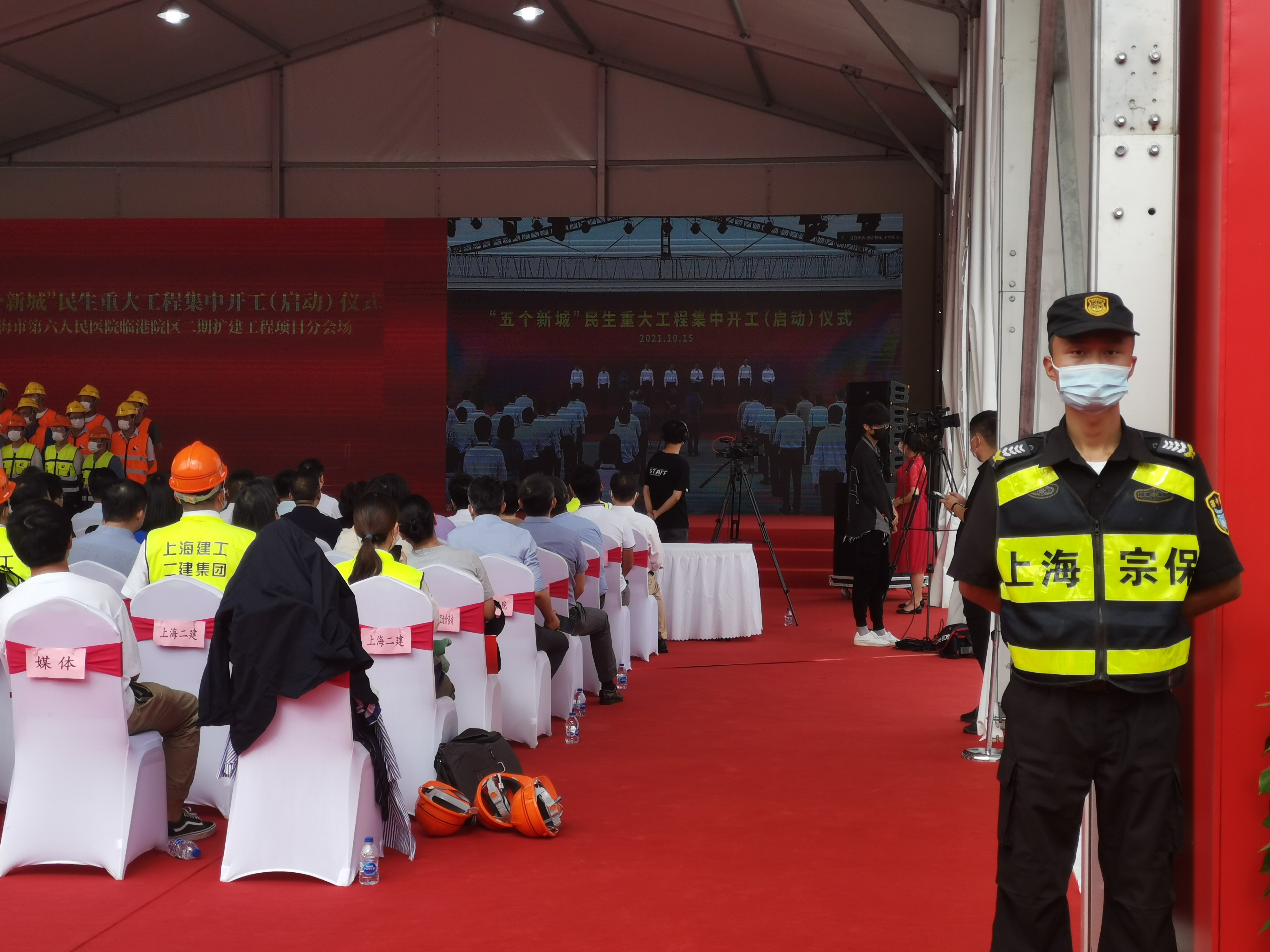 10月15日,上海市“五個(gè)新城”民生重大工程集中開工暨第六人民醫(yī)院臨港院區(qū)二期擴(kuò)建工程開工儀式在六院院區(qū)舉行,宗保公司承擔(dān)此次開工儀式安保秩序維護(hù)任務(wù)。