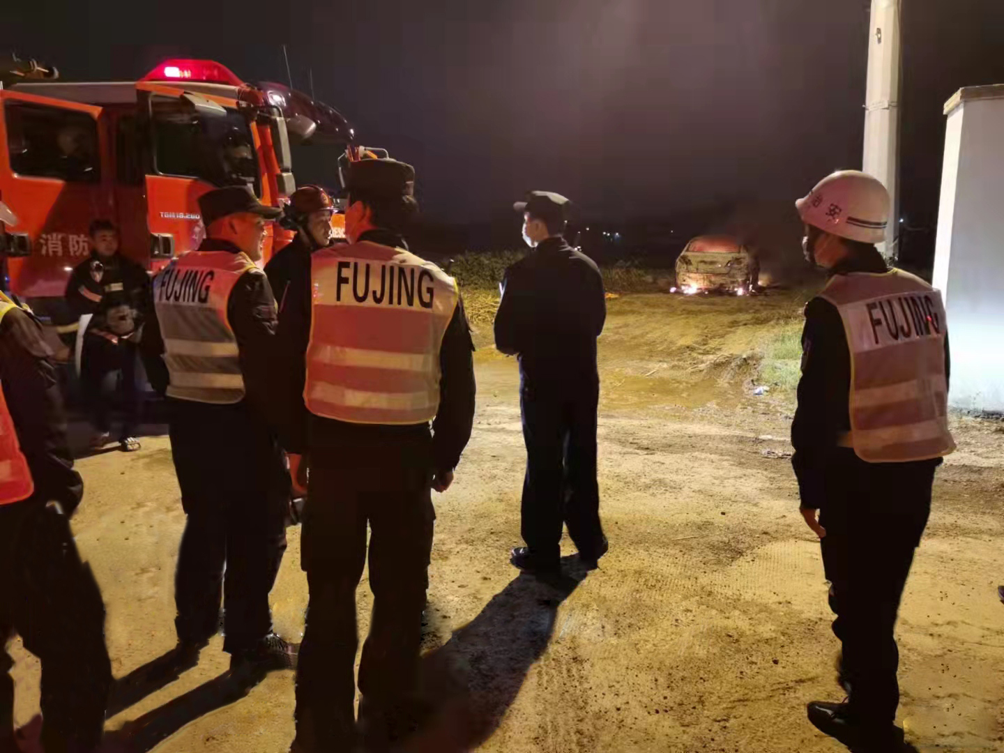 路遇轎車起火 隊(duì)員幫忙撲救—孫橋輔警項(xiàng)目隊(duì)員幫助撲滅起火轎車