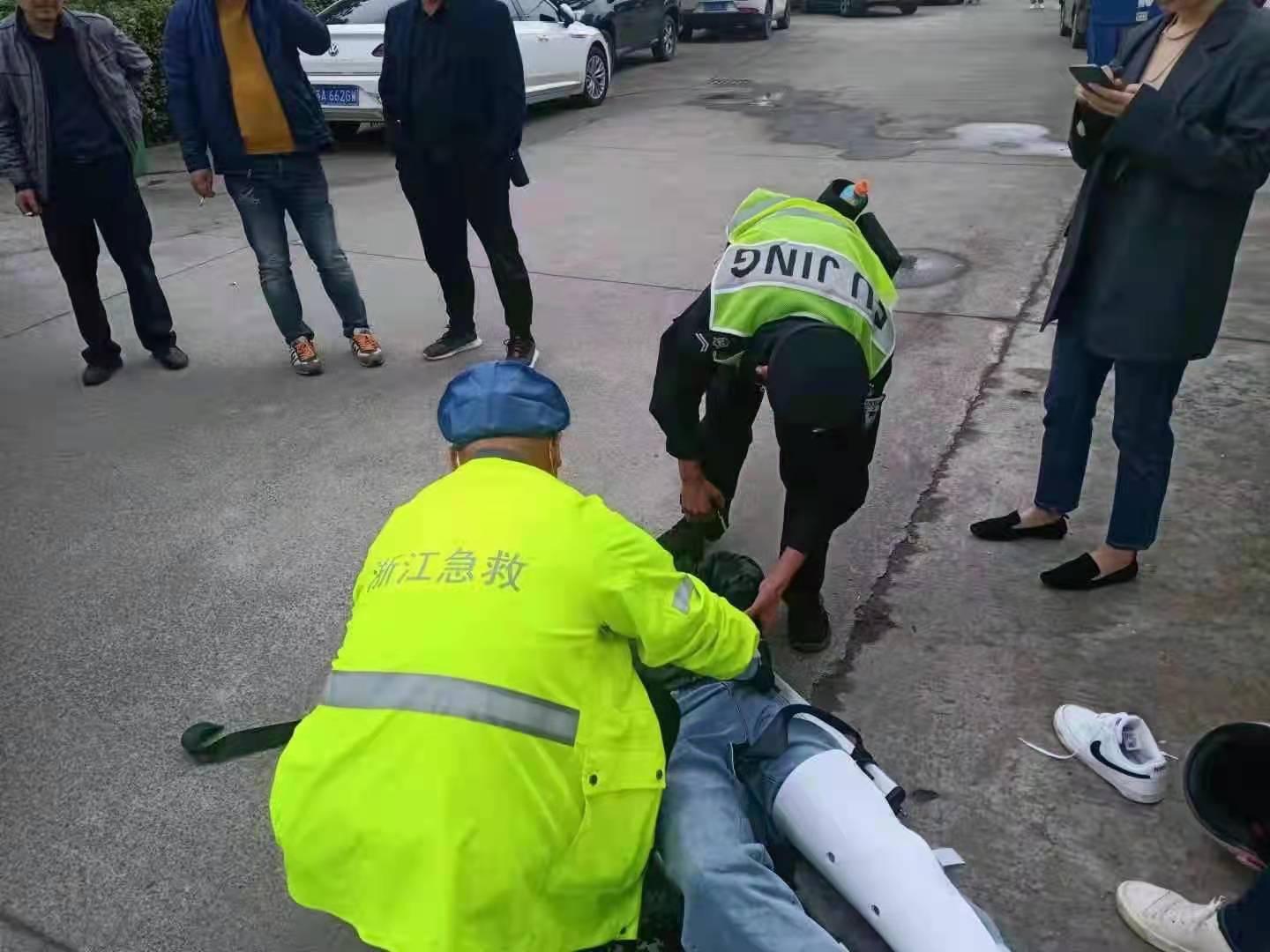 兩名隊(duì)員見狀,立即跑上前察看。電瓶車車主受傷嚴(yán)重,身體無法動(dòng)彈,腦部和左腿均有受傷。