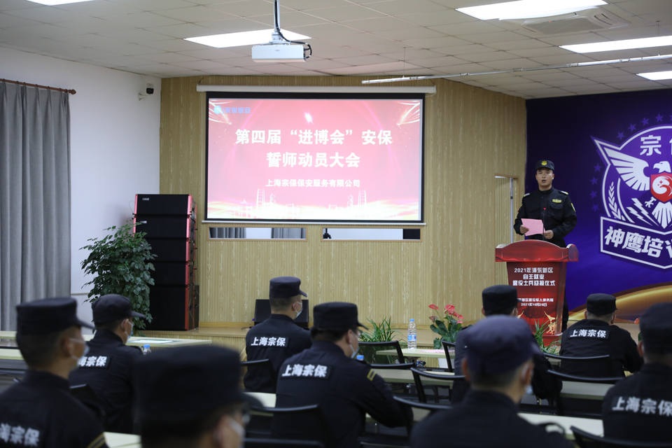 為了全力助力做好第四屆中國國際進口博覽會安保秩序維護工作,11月4日,宗保公司召開進博會安保誓師動員大會,公司總經(jīng)理晏軍、副總經(jīng)理楊璞、侯留勇、季強和全體安保參戰(zhàn)人員參加會議。