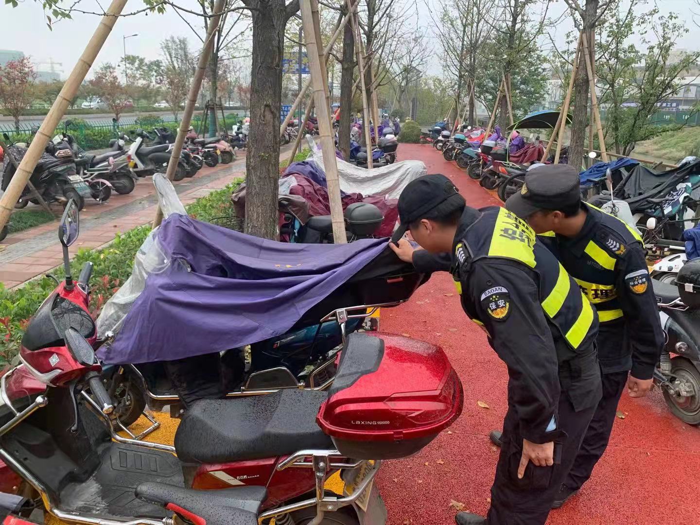 在等待應急救援人員的同時,考慮到現(xiàn)場停放的非機動車較多,一旦起火將無法控制,兩名隊員迅速將周圍車輛集中搬離,并提醒來往人員注意避讓。