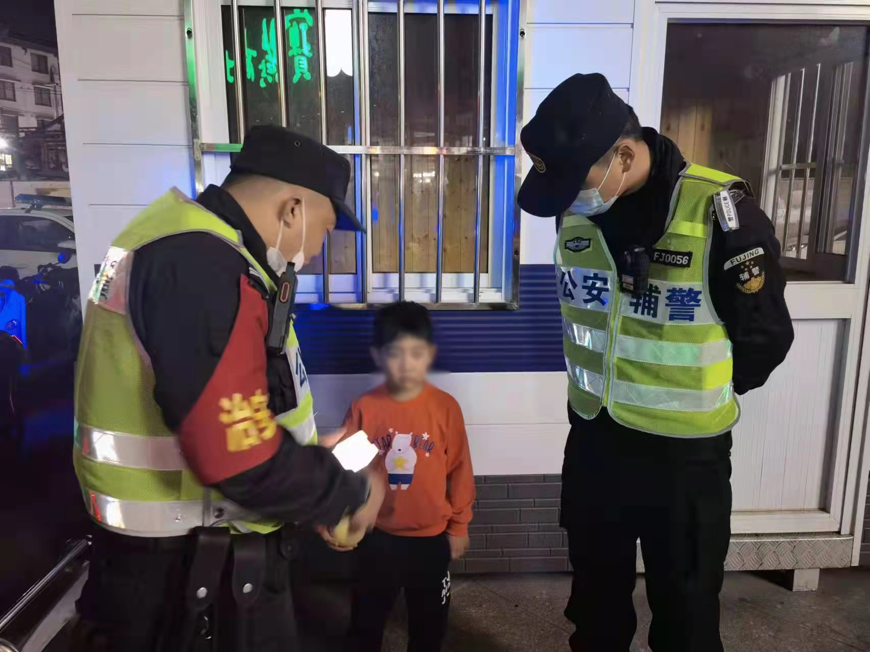 11月15日,宗保公司駐周浦輔警項目隊員幫助走散男孩找到家人。