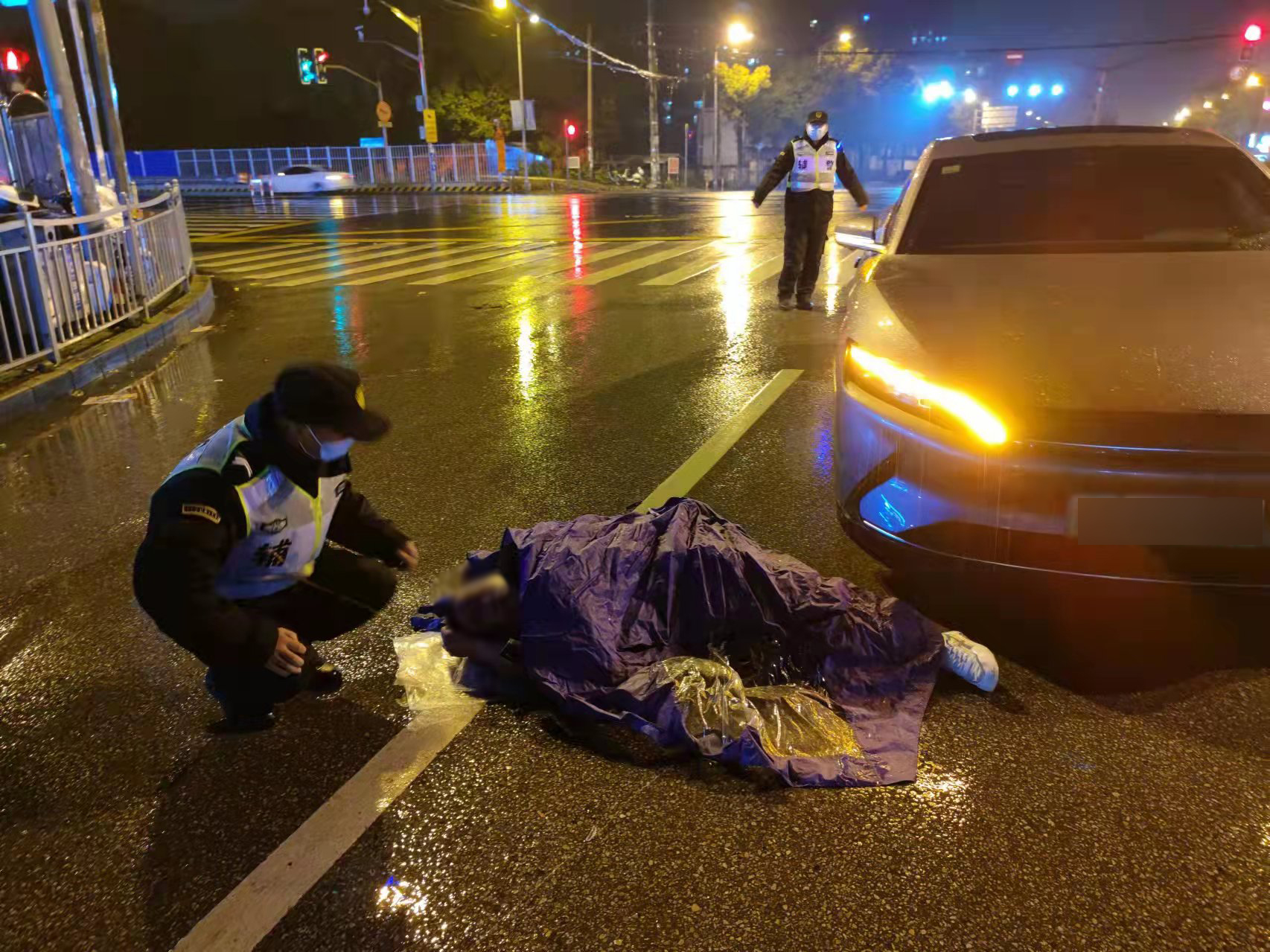 當日23:10,李俊書、梁珪武在新奉公路滬南公路路口值勤時,一輛轎車與一輛電瓶車發(fā)生碰撞,騎電瓶車男子被摔倒在地。