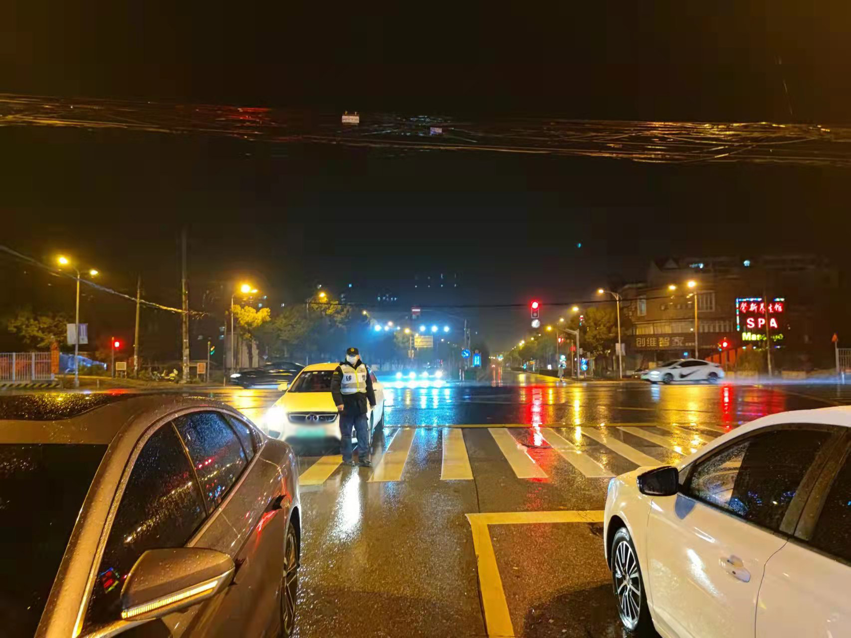 考慮到雨天路滑,再加上晚上光線不好,過往車輛速度又快,為避免二次事故的發(fā)生,兩人便對過往車輛進行交通引導。