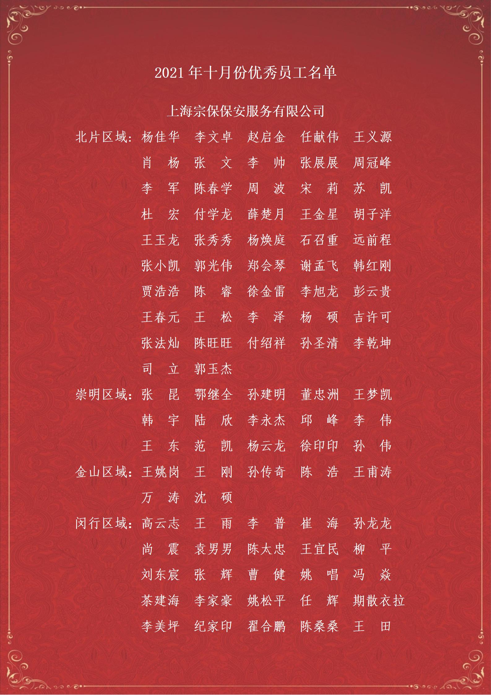 10月份,公司廣大員工根據(jù)甲方的要求,按照公司的部署,充分發(fā)揚連續(xù)奮戰(zhàn)、團結(jié)協(xié)作、勇毅前行的工作作風,嚴格落實疫情防控措施,積極配合參與國慶安保、疫苗接種等重大臨時性秩序保障維護,出色地完成了公司承接的各項工作任務。期間,涌現(xiàn)出了一批履職盡責、見義勇為、拾金不昧的優(yōu)秀員工和先進典型。