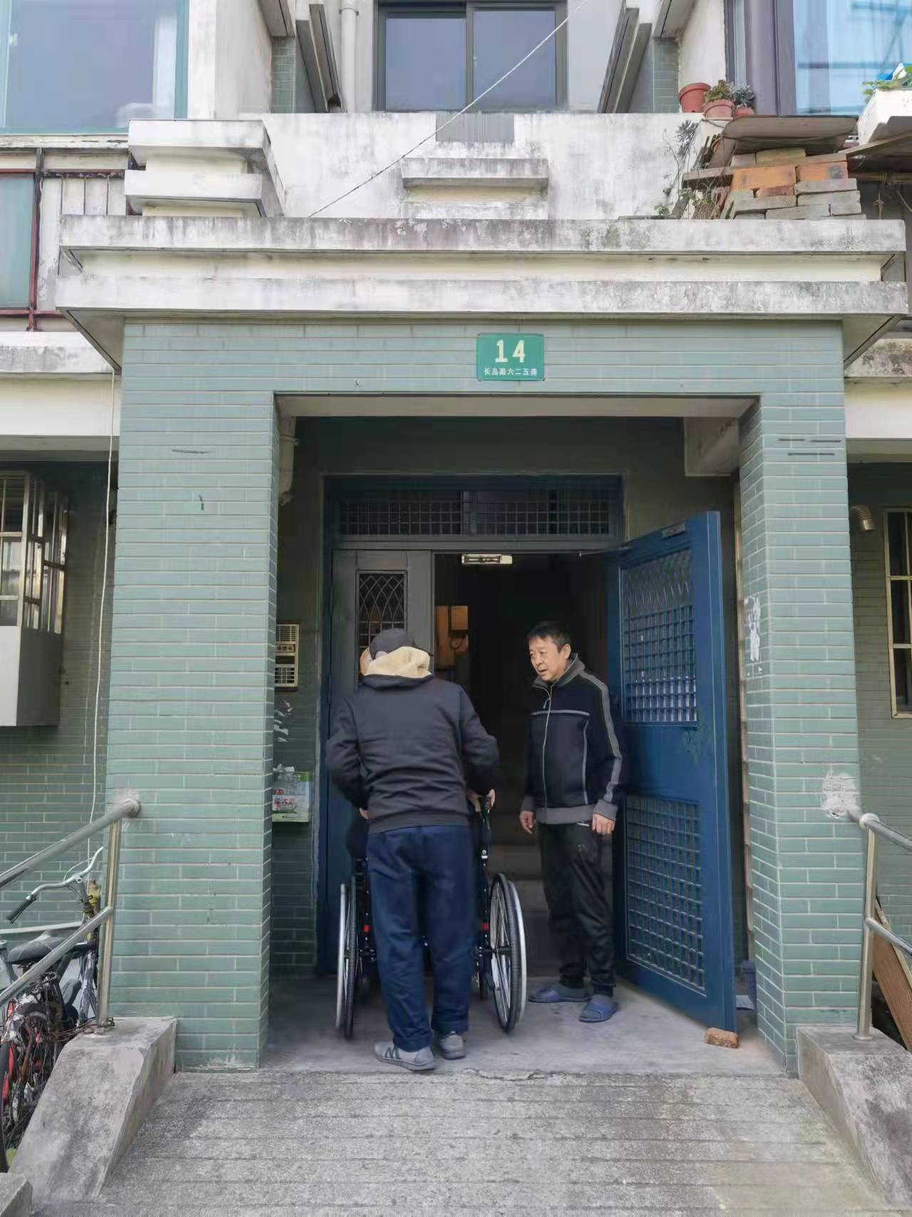 老人年紀(jì)大,又有一定的體重,為了避免發(fā)生意外,范大才背著老人格外小心,不敢過于直起腰,生怕老人從背上滑下來,所以小心翼翼地,一步一步慢慢地往下走。來到樓下,范大才輕輕地將老人放到輪椅上,并叮囑于阿姨抓緊時(shí)間帶老人去醫(yī)院就醫(yī)。