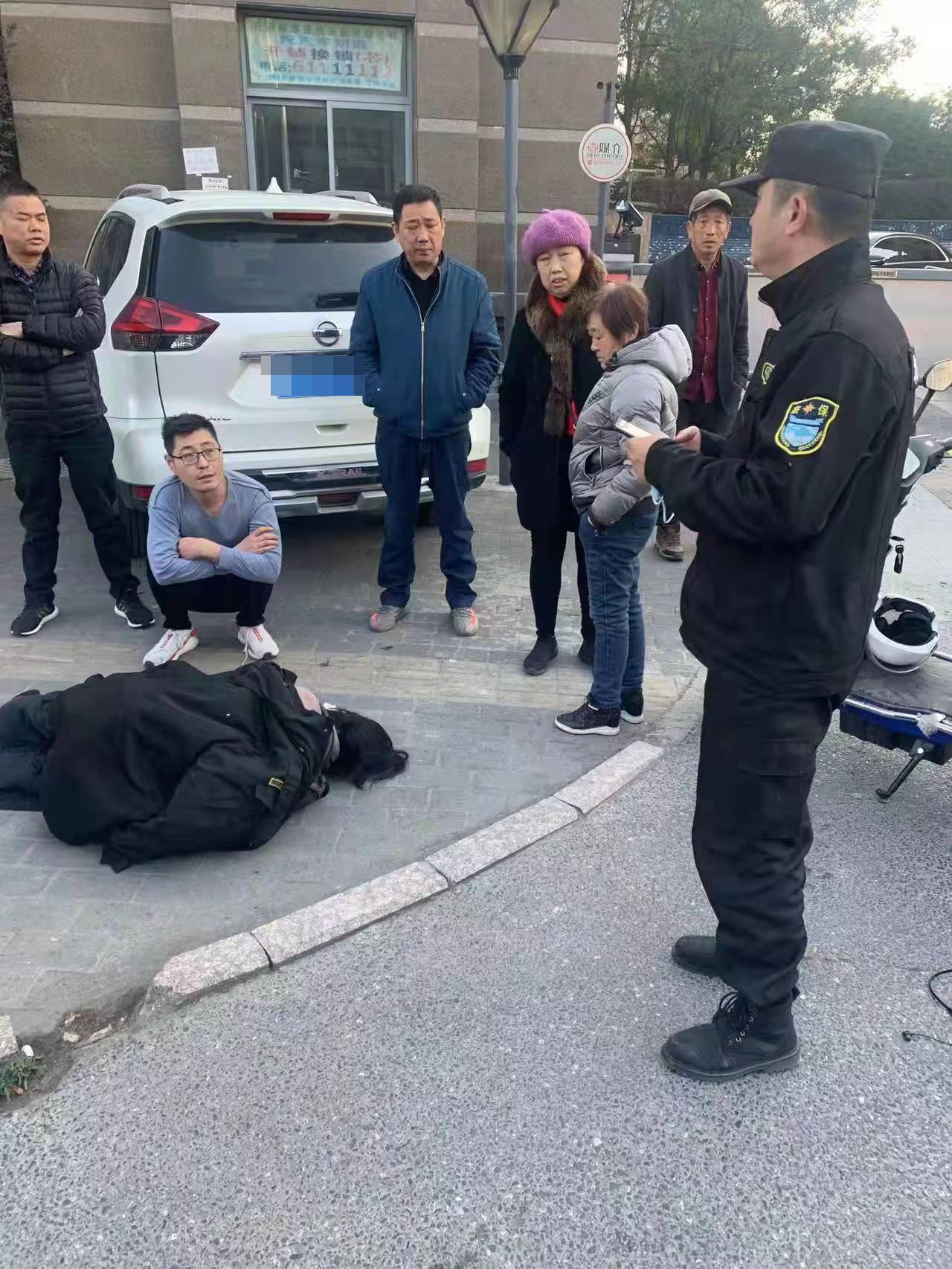 兩名隊(duì)員見狀連忙上前查看,女子躺在地上一動(dòng)不動(dòng),和她對(duì)話也沒反應(yīng)。汽車車主愣在一旁,一時(shí)也不知道該怎么辦,經(jīng)李金航提醒,汽車車主才緩過神來,趕緊撥打了120急救和派出所報(bào)警電話。