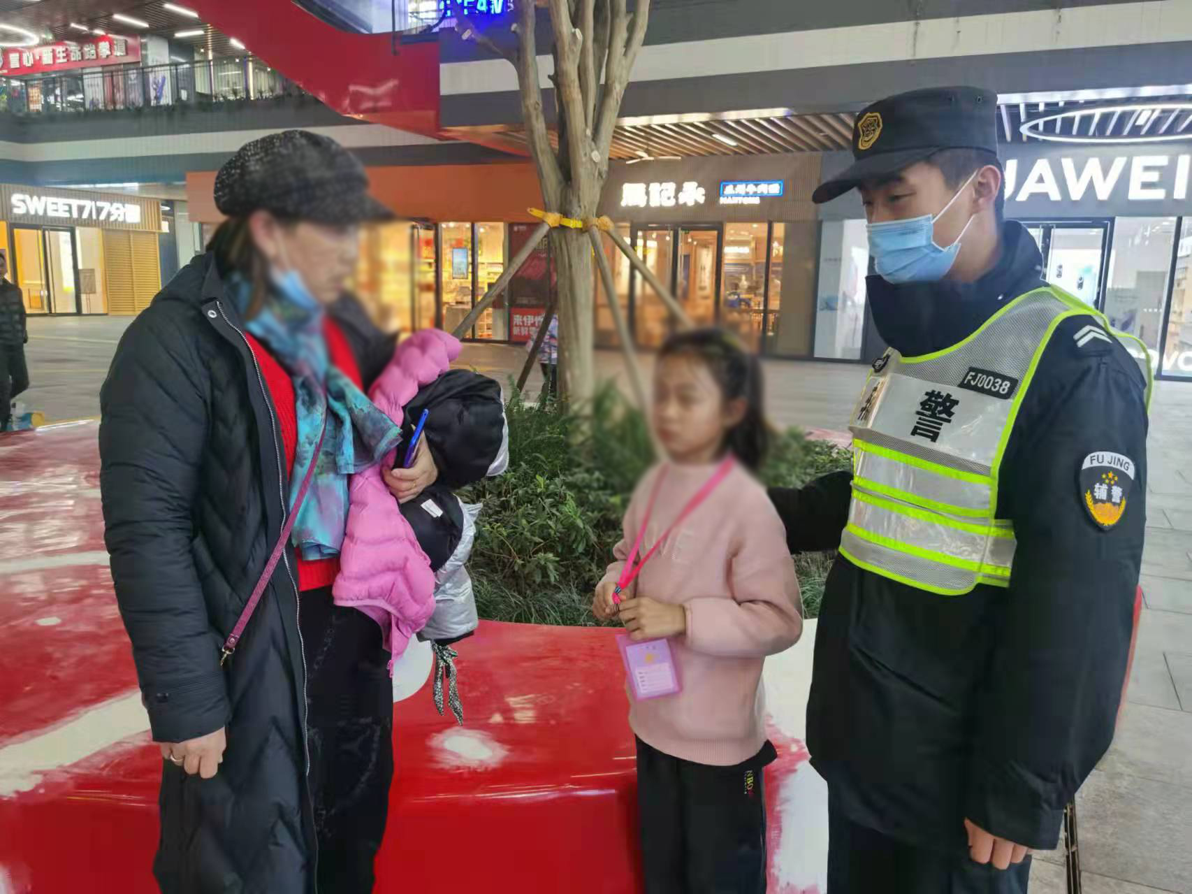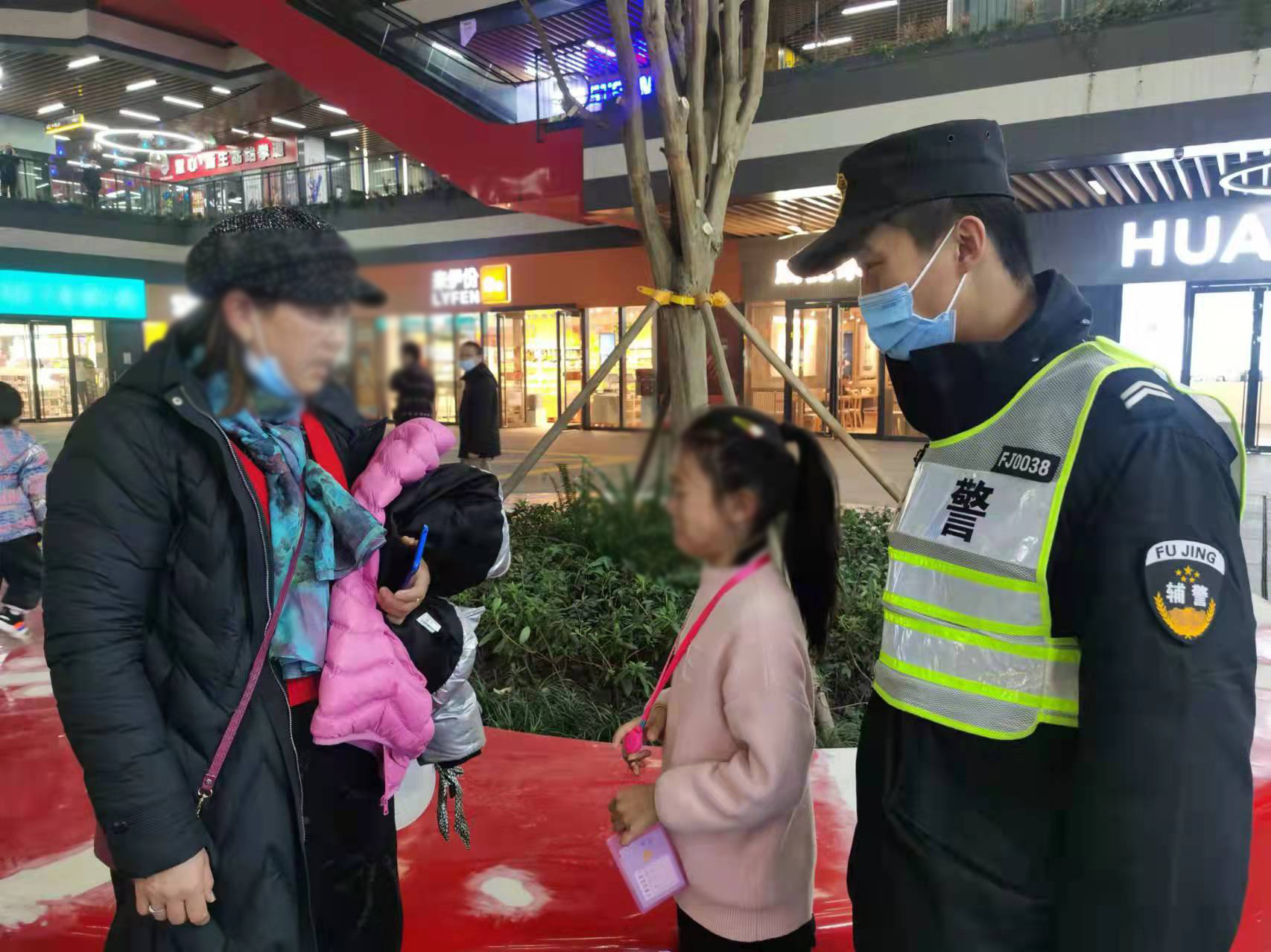 當日20:50,宋其波在新環(huán)廣場值勤時,看到一個小女孩,身邊沒有大人陪同,獨自一個人在廣場上一邊走一邊哭。