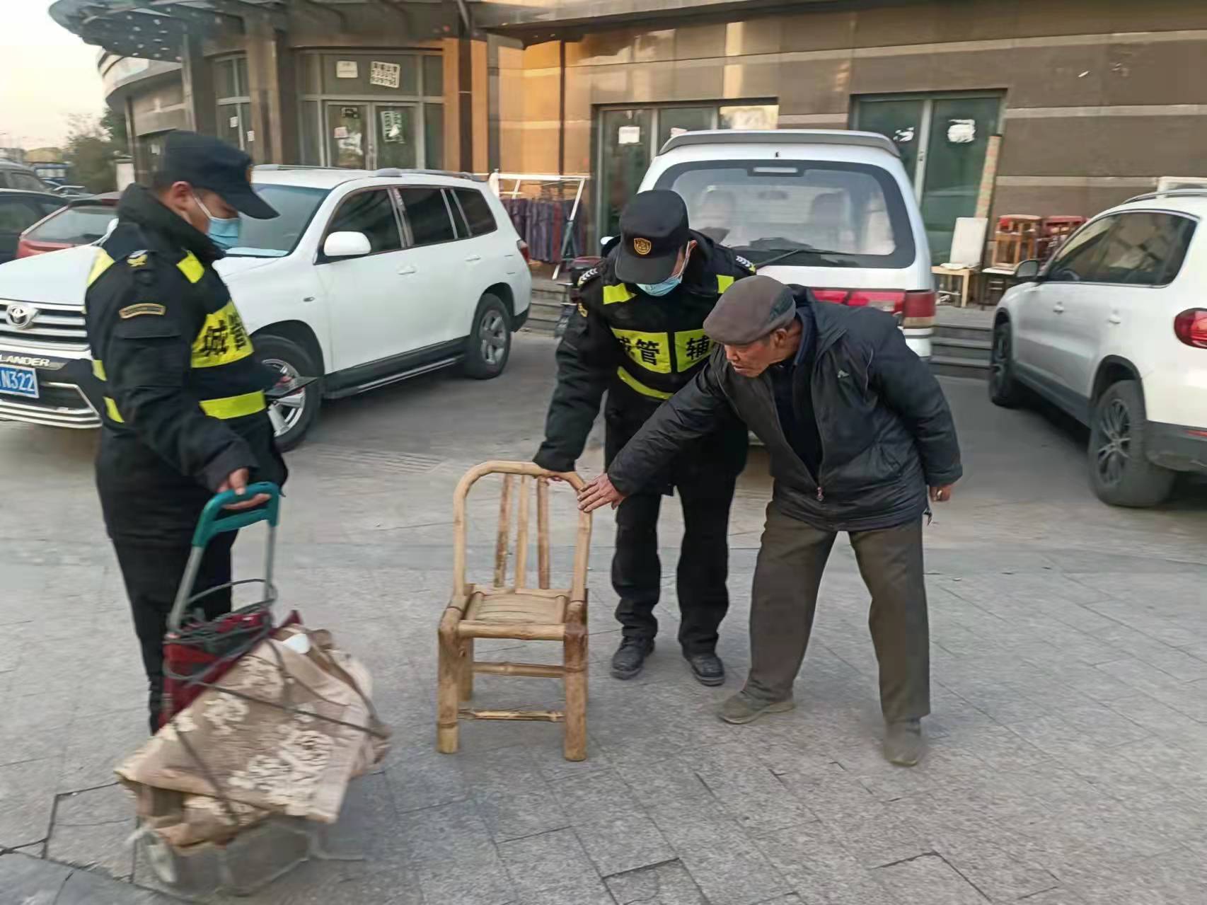 在等待民警時,細心的徐周發(fā)現(xiàn)老人的腿一直在發(fā)抖,就趕忙跑到附近的商鋪借了一把椅子,攙扶老人坐下。