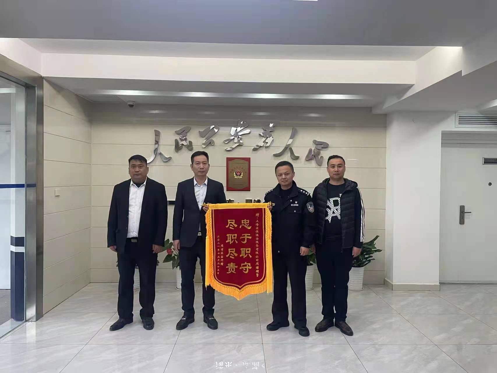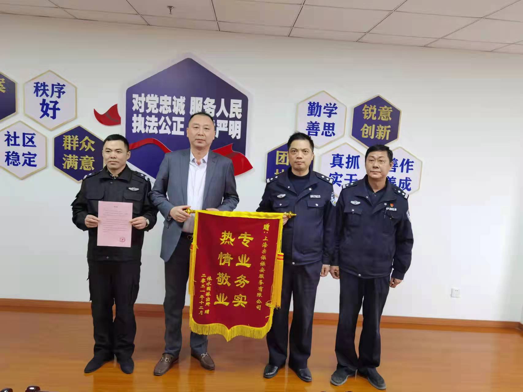 12月25日,宗保公司駐周浦輔警項目收到周浦派出所送來的一面繡有“忠于職守 盡職盡責”的錦旗,感謝宗保隊員良好的工作表現(xiàn)。