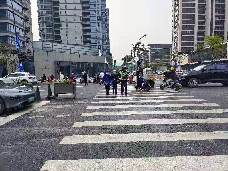守護校園安全時,冒著嚴寒、頂著酷暑,配合交警工作站守候在上學放學路上,維護著交通秩序,值守著學生安全,發(fā)現(xiàn)隱患及時上報,避免了事故的發(fā)生。