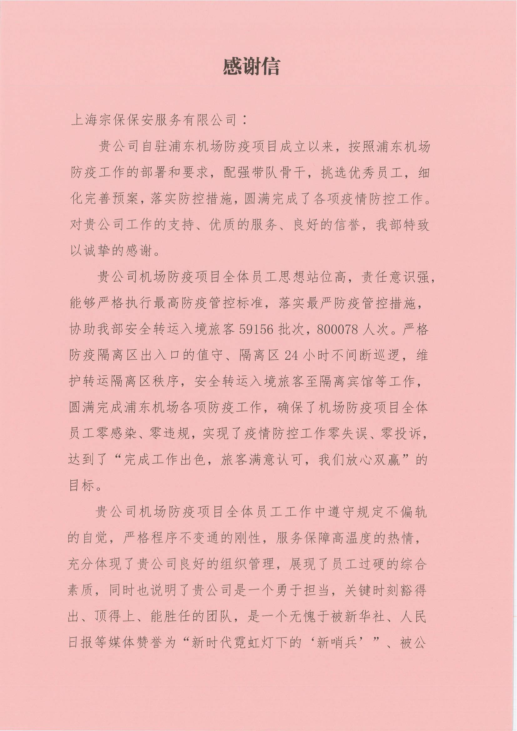 公司駐機(jī)場防疫項(xiàng)目全體員工不辭辛苦、不懼風(fēng)險,協(xié)助交通保障部安全轉(zhuǎn)運(yùn)入境旅客59000批次,人員800000人次;嚴(yán)格值守防疫隔離區(qū)出入口、24小時不間斷巡邏隔離區(qū)、維護(hù)轉(zhuǎn)運(yùn)隔離區(qū)秩序,做好了入境旅客至指定隔離賓館封閉轉(zhuǎn)運(yùn)等工作,實(shí)現(xiàn)了疫情防控工作零失誤、零投訴,實(shí)現(xiàn)了“完成工作出色,旅客滿意認(rèn)可,我們放心雙贏”的目標(biāo)。