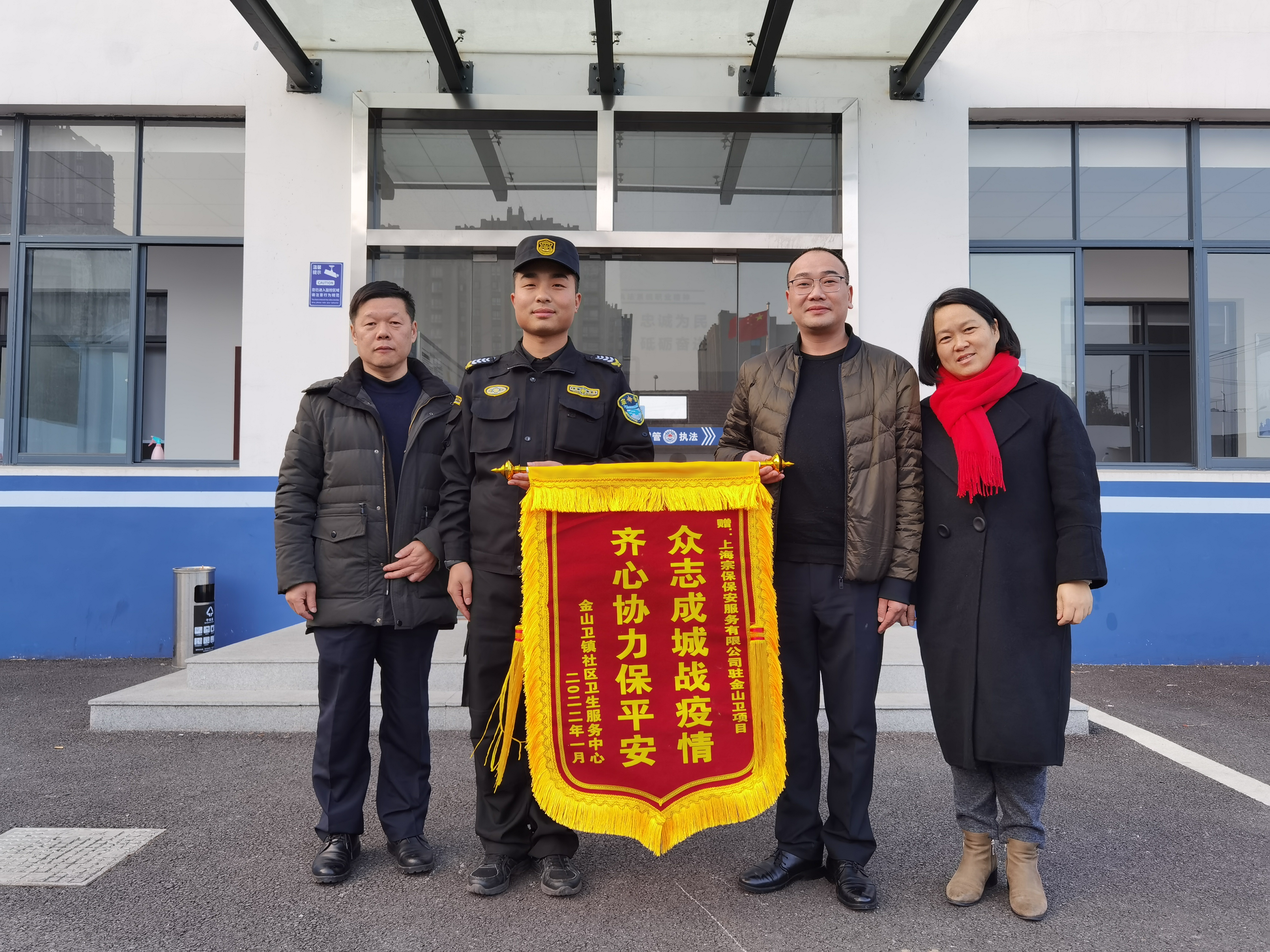 1月18日,金山衛(wèi)社區(qū)衛(wèi)生服務(wù)中心高浩美院長將繡有“眾志成城戰(zhàn)疫情 齊心協(xié)力保平安”的錦旗送到宗保公司駐金山衛(wèi)項目,表揚宗保隊員出色的工作表現(xiàn)。