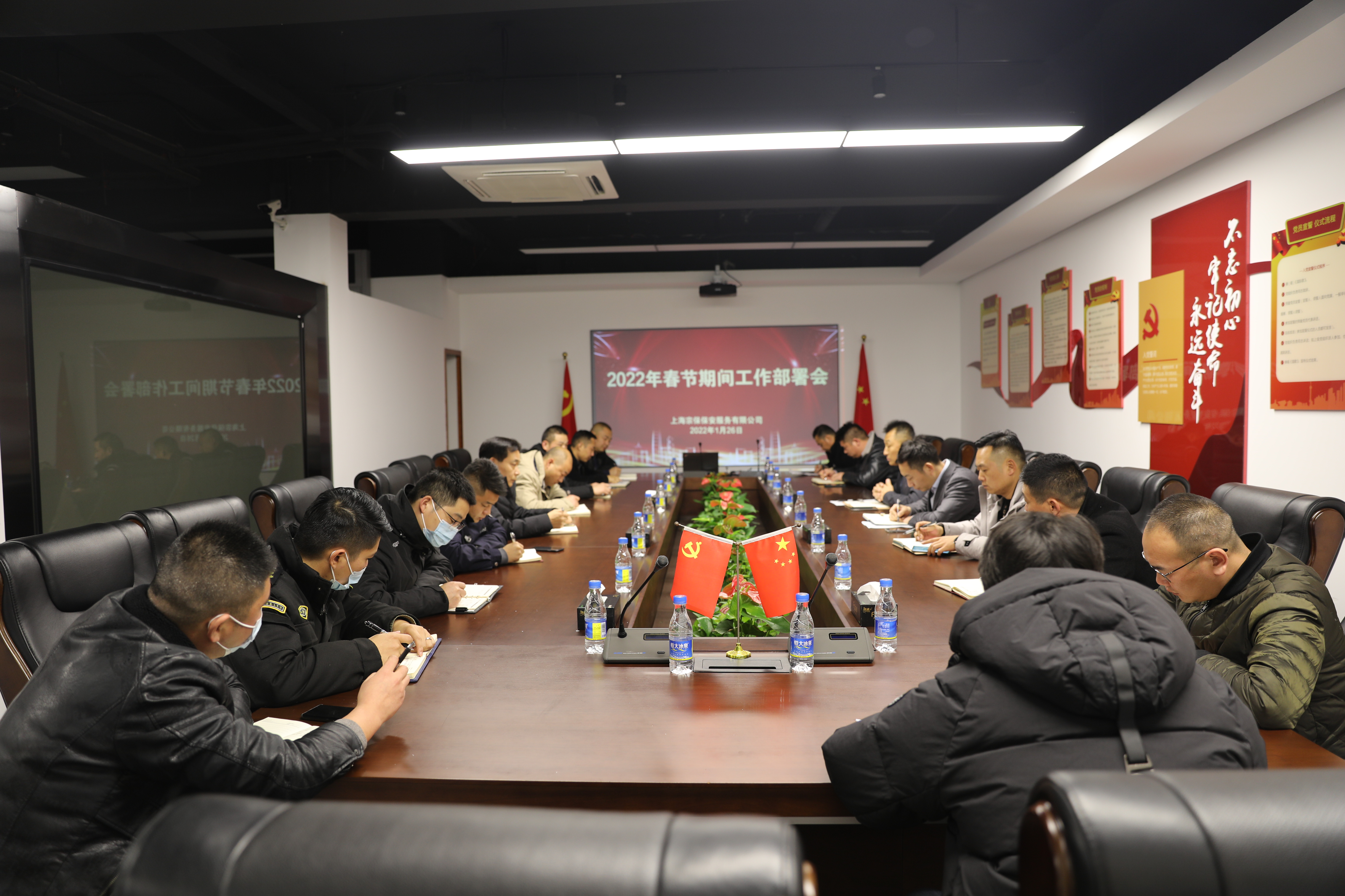 為切實做好節(jié)日期間各項安保工作,節(jié)前公司召開專題工作會議,提前做好相關工作部署,明確安保任務,強化安保職責,開展安全隱患排查工作,有效預防各類安全問題,同時,做好春節(jié)期間值班安排,建立24小時值班制度。