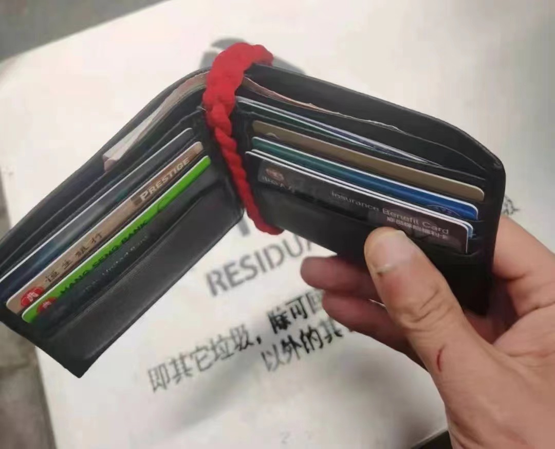 當(dāng)日9:50,楊松淼在楊思路靈巖南路路口附近巡邏時(shí),撿到一個(gè)錢包,發(fā)現(xiàn)內(nèi)有400元現(xiàn)金、4張銀行卡和1張醫(yī)保卡,便按流程將情況上報(bào)項(xiàng)目負(fù)責(zé)人,并按照指示在原地等待。