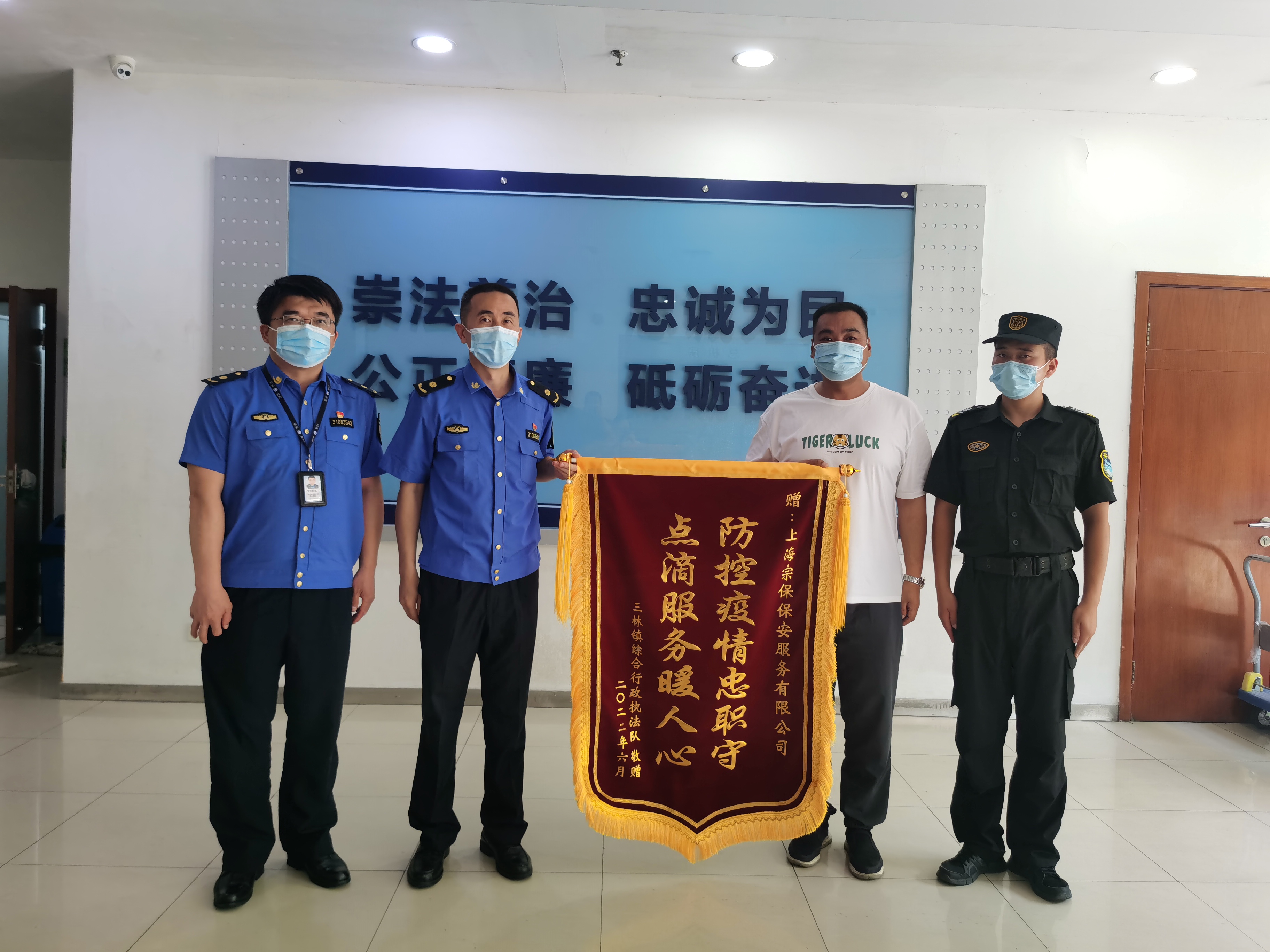 7月5日,浦東三林城管中隊(duì)送來(lái)一面繡有“防控疫情忠職守 點(diǎn)滴服務(wù)暖人心”的錦旗和一封感謝信,充分肯定宗保公司員工在疫情防控期間所做的工作,衷心感謝公司員工的辛勤付出。